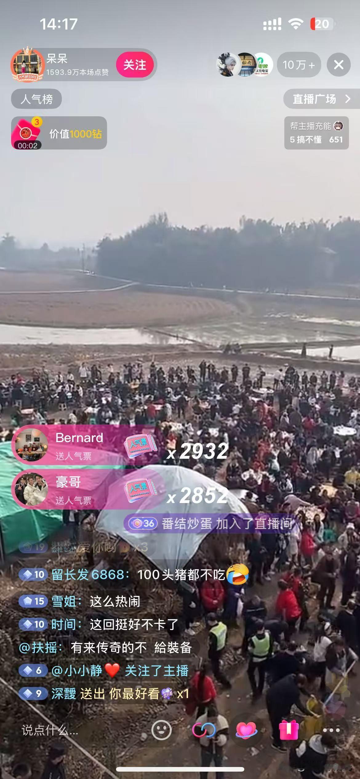 一句话邀请,竟引来上千人进村杀猪 重庆合川女子“呆呆”凌晨上网发视频,只是担心老父亲按不住年猪,随口邀请网友来帮忙吃“刨猪汤”。没想到,这条视频火了,引来上千名网友从各地开车进村。 村里为此连杀了5头猪,摆起流水席,场面比过年还热闹。当地文旅部门也迅速跟上,现场发景点门票,一起张罗。原本的农家小事,变成了一场全网围观的温暖狂欢。 互联网真的是一切皆有可能,有的只是一句话就能够引发这么大的泼天富贵。 看着直播间的在线人数,真的是很嫉妒,这也是许多人想要取得的结果,如今被一句话给办到了。 网友热评: 这大概是最有“味道”的团建!城里人不是喜欢解压吗?这才是真正的“解压盛宴”。 如果是你看到这样的邀请,会去凑这个热闹吗?你觉得这种突然的走红,对当事人来说是惊喜还是压力?
