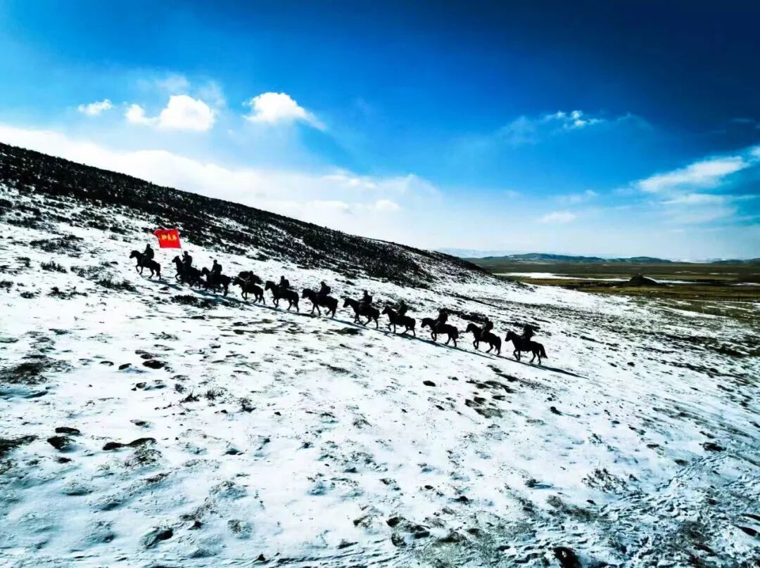 翻过第一道山峰,一条冰封的河流横在眼前。冰面之下,呈现出深浅不一的蓝色。曾祥鹏打了个手势,一行人小心翼翼牵缰过河。突然,曾祥鹏牵行的战马前蹄下方传来“咔嚓”一声脆响,马身猛然一歪。刹那间,曾祥鹏将马头向侧上方一拉,战马借力一蹬,将马蹄从冰窟中拔出。