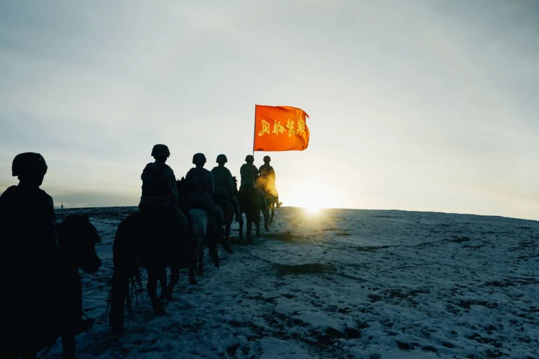 晨光撕开厚重的云层,碎金般洒向雪原。迎着晨光,记者跟随巡逻队伍,踏上巡逻路。