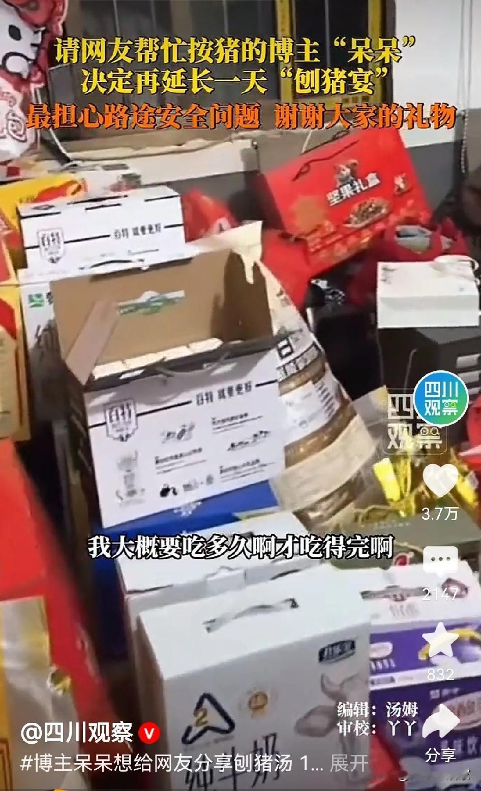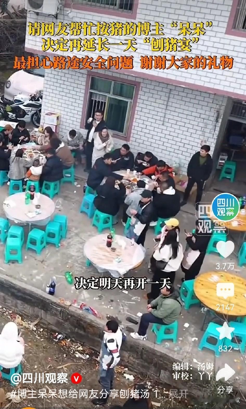 多少年没有参加杀年猪活动了, 等你年假到家时,猪头炖好了,猪蹄红烧了,鲤鱼也炸好了,丸子炸好了,回家就等吃了。 现在难得感受村里的年俗了,提前置办年货,挑选新衣服的氛围也都感受不到了。 所以这次按年猪爆火,更是人们对年味稀缺的渴望,对童年记忆的释放。