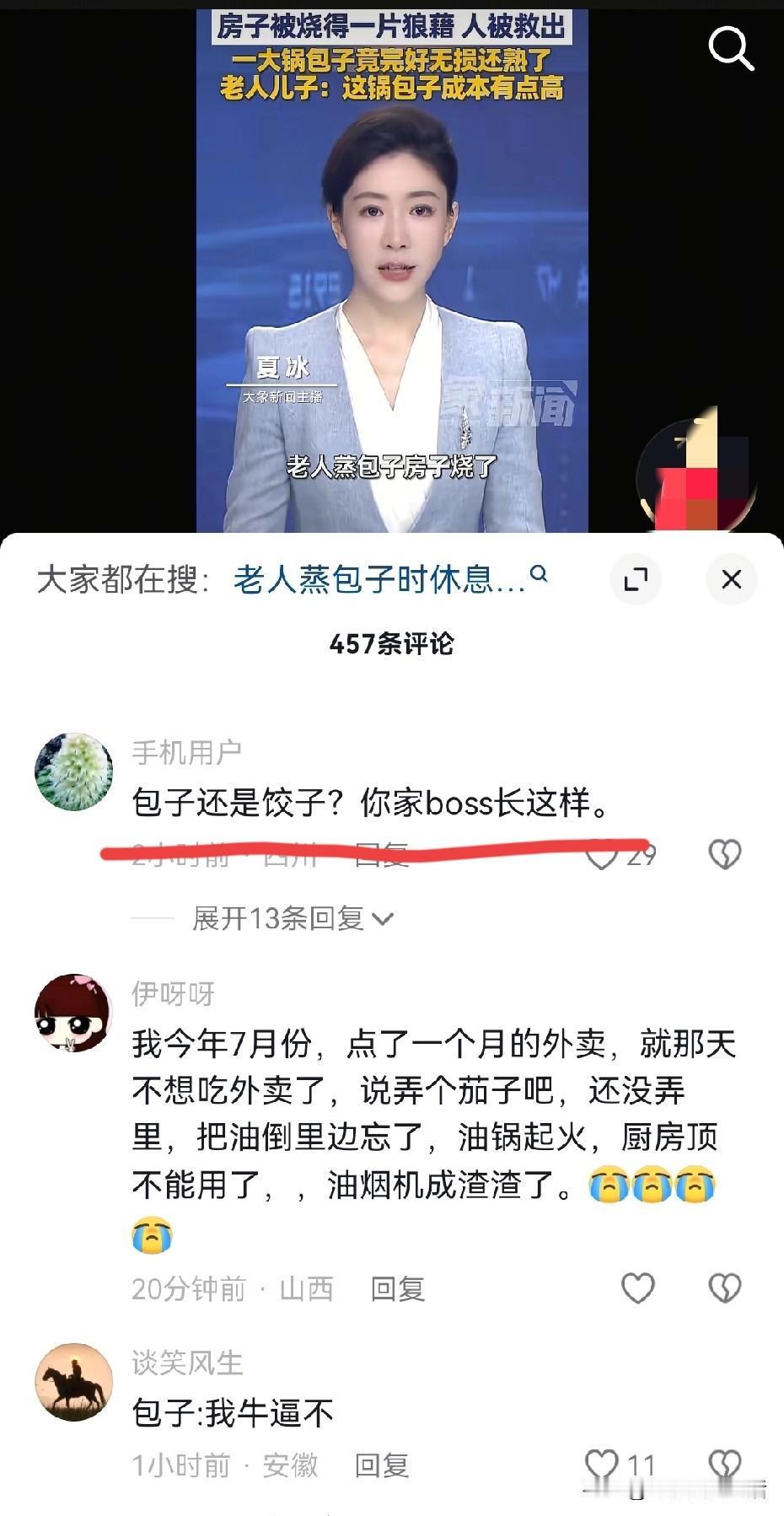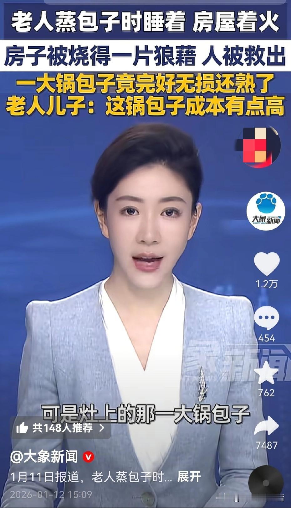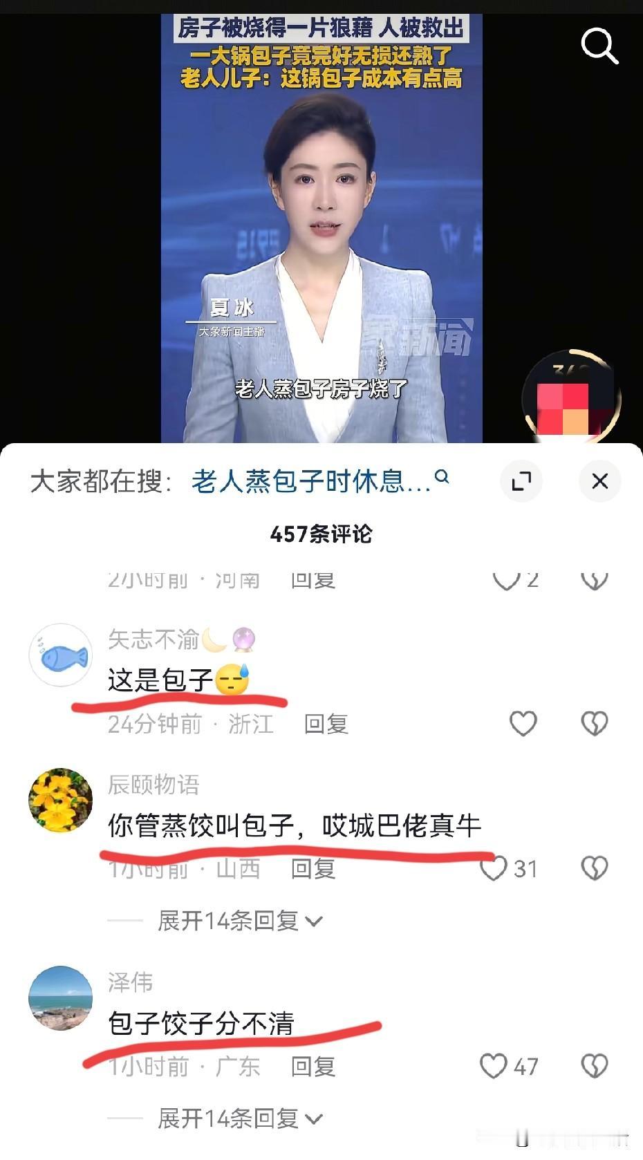 徐州老人给钓鱼佬蒸包子,把房子点着了,包子却安然无恙的熟了。 评论区却为包子的形状吵起来了! 江苏徐州的一个钓鱼场的老板的母亲,在给儿子钓场蒸包子的时候,由于年纪大了,面对枯燥无味的烧火煮饭,一不小心就睡着了。 当时可能是锅底的火星掉落到地面上(烧过农村柴火灶的都知道,经常不注意就会有柴火带着火星掉落),再加上当天外边刮起了大风,很快大火就把房子给吞噬了,面对熊熊燃烧的大火,尽管消防员以最快的速度赶到,最后还是把所有房子烧了一个精光。 这时候钓场老板的母亲还想着他那一锅包子,打开一看还真有意外惊喜,只见一锅包子全部安静的躺在锅里,竟然神奇的都蒸熟了(或者是烤熟的也有可能),并且没有一点烤糊的。 不知道最后消防员有没有吃他们这用一栋房子烤熟的包子,虽然代价比较大,不过包子没事就是成功了,更重要的是人没事。 不过很多网友看到锅里的包子,就不淡定了,因为在他们当地,这样形状的都叫饺子,或者是叫蒸饺,和包子差别还是非常大的。 不知道是主播家里叫这种食物为包子,还是把它搞错了,总之评论区一片争论,就没有看到有人说这是包子的。 在我们老家,离徐州大概一百多公里的地方,这种食物不叫包子,也不叫饺子,而是叫zhuo子,一般都是叫菜(角zhuo)子,我想应该和徐州那边差不多吧。 中国美食千千万,每个地方都有不同的做法,更是有不同的叫法,这样才能显示出来我们对美食追求的多样性! 不知道有没有徐州的朋友出来科普一下,在徐州这种食物到底叫什么? 还有你们家乡叫这样的食物是什么?