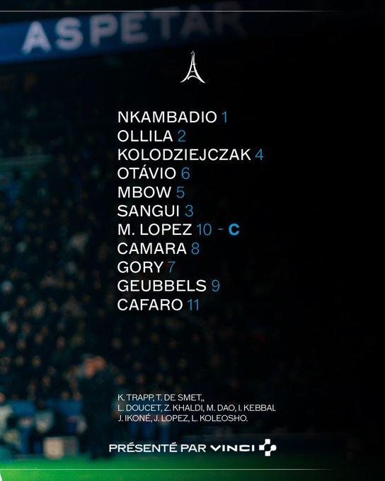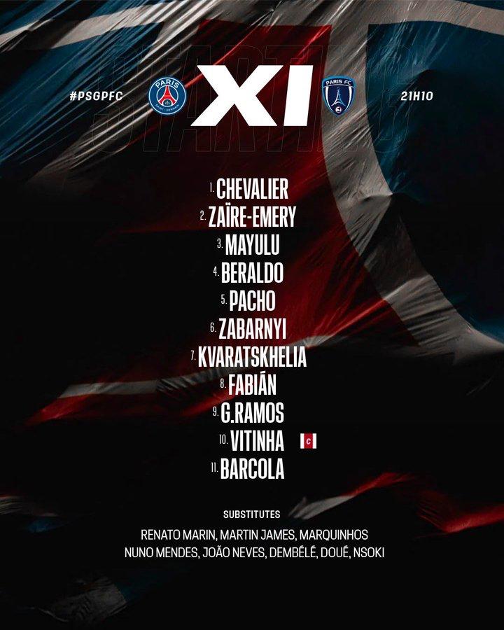 巴黎圣日尔曼VS巴黎FC首发:维蒂尼亚、K77出战,登贝莱替补