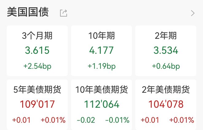 美债收益率走高,但远低于早盘恐慌性高点,10年期收益率微涨1个基点。美元指数则终结连涨、较日高一度跌近0.6%。离岸人民币则一度升至2023年5月份高点。