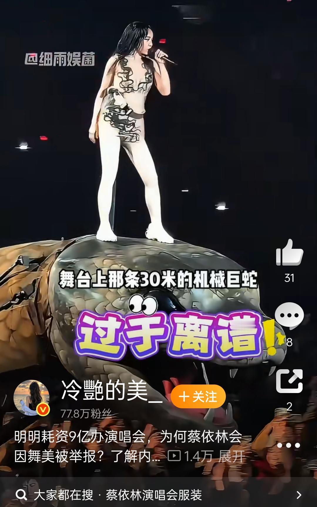 蔡依林7000万亏损案:艺术的锅,还是审美的劫? 砸2亿造华语顶配舞台,换来7000万巨亏+数百封举报信,蔡依林这波属实把「艺术与现实的拉扯」演到极致。 一边是粉丝吹爆的30米机械蛇、360°全景舞台,被赞「华语演唱会天花板」;一边是网友举报的「西方元素吸运气」,魔幻理由让人哭笑不得。 有人说她太疯魔,为艺术烧钱不眨眼;有人骂举报者狭隘,容不下一点艺术多样性。说到底,这哪里是演唱会亏损,分明是小众审美与大众偏见的正面碰撞。