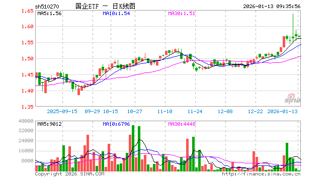 国企ETF(510270)业绩比较基准为上证国有企业100指数,管理人为中银基金管理有限公司,基金经理为赵建忠、李念,成立(2011-06-16)以来回报为82.69%,近一个月回报为5.43%。