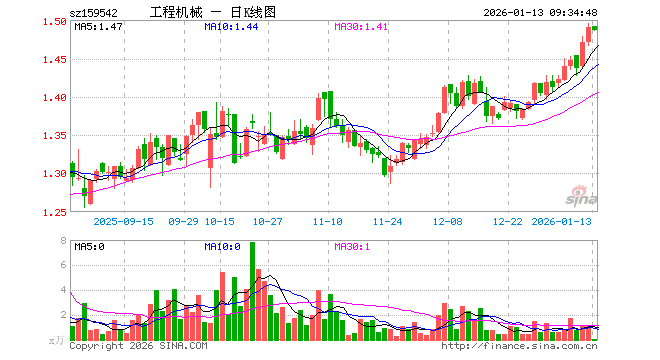 1月13日,工程机械ETF大成(159542)开盘涨0.07%,报1.491元。工程机械ETF大成(159542)重仓股方面,三一重工开盘涨0.62%,徐工机械跌0.09%,潍柴动力跌0.05%,恒立液压涨2.03%,中联重科涨0.79%,江淮汽车涨0.16%,柳工涨0.34%,海南华铁跌0.49%,杭叉集团涨0.18%,安徽合力跌0.58%。