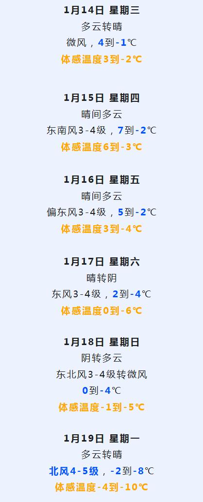 随着冷空气到来,周末天津市有一次阴天过程。预计周六(17日)市区最高气温下降至2℃,周日下降至0℃,下周一低至-2℃,寒意十足。
