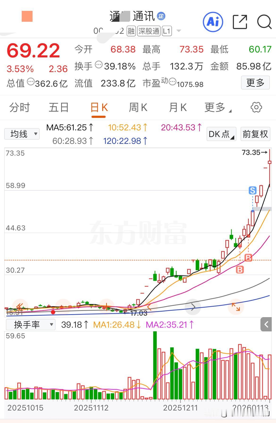 我也算是经历过地天板的人了,太刺激了! 通宇昨天历史新高顶一字板,今天竞价也是想继续顶一字板的,可惜昨晚商业航天利空太多,最终高开2.27%! 但没想到开盘后商业航天大部分闪崩跌停,通宇自然也是顶不住的,因此在开盘稍微向上拉了一下之后就掉头向下,一根大直线差点就跌停了! 此后通宇在深水区挣扎了10多分钟,9点59分还是封上了跌停!说句实话,之前涨了没合计卖,这会儿跌停了还真的有点慌,有点想卖了[捂脸]! 没想到跌停封了不到10分钟,跌停就被撬开了!此后经过多波拉升,11点20分的时候差一点就涨停了!不过后面很快又跳水,最终上午收盘上涨3.5%! 下午看看情况吧,看看要不要卖一点,这走势有点太刺激,也有点格局不动了!
