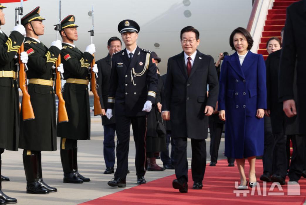 1月13日李在明抵达大阪机场,接机现场与访华时抵达北京机场,差的不是一星半点儿呀!从韩媒体晒出的照来看,舷梯上没有红毯也就罢了,地面上的红毯也很窄,韩总统与夫人走在上面,两边都没有什么剩下多少红毯啦! 还有日本接机现场没有鲜花也没有仪仗队迎接,反观他们访华抵达北京机场时,舷梯上的红毯很鲜艳,走下舷梯就有小朋友上前送上鲜花,地面的红毯从舷梯铺到了专车门口。 是不是真心迎接远道而来的贵客?其实看接机现场就知道了,相信以李在明的智商是能够感觉到差距的。