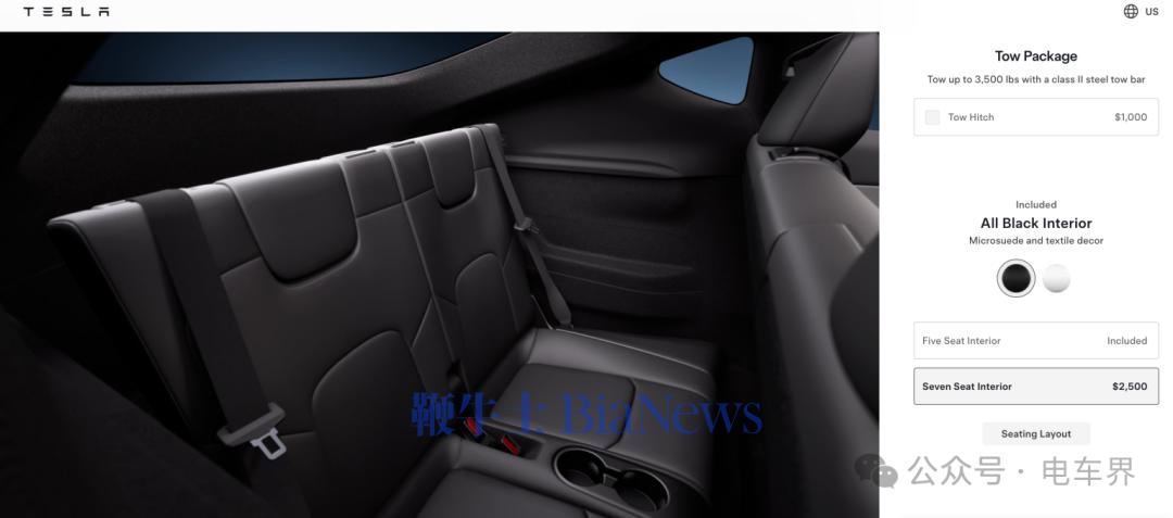 特斯拉2019年推出ModelY时,便宣布将提供可选的7座第三排配置。