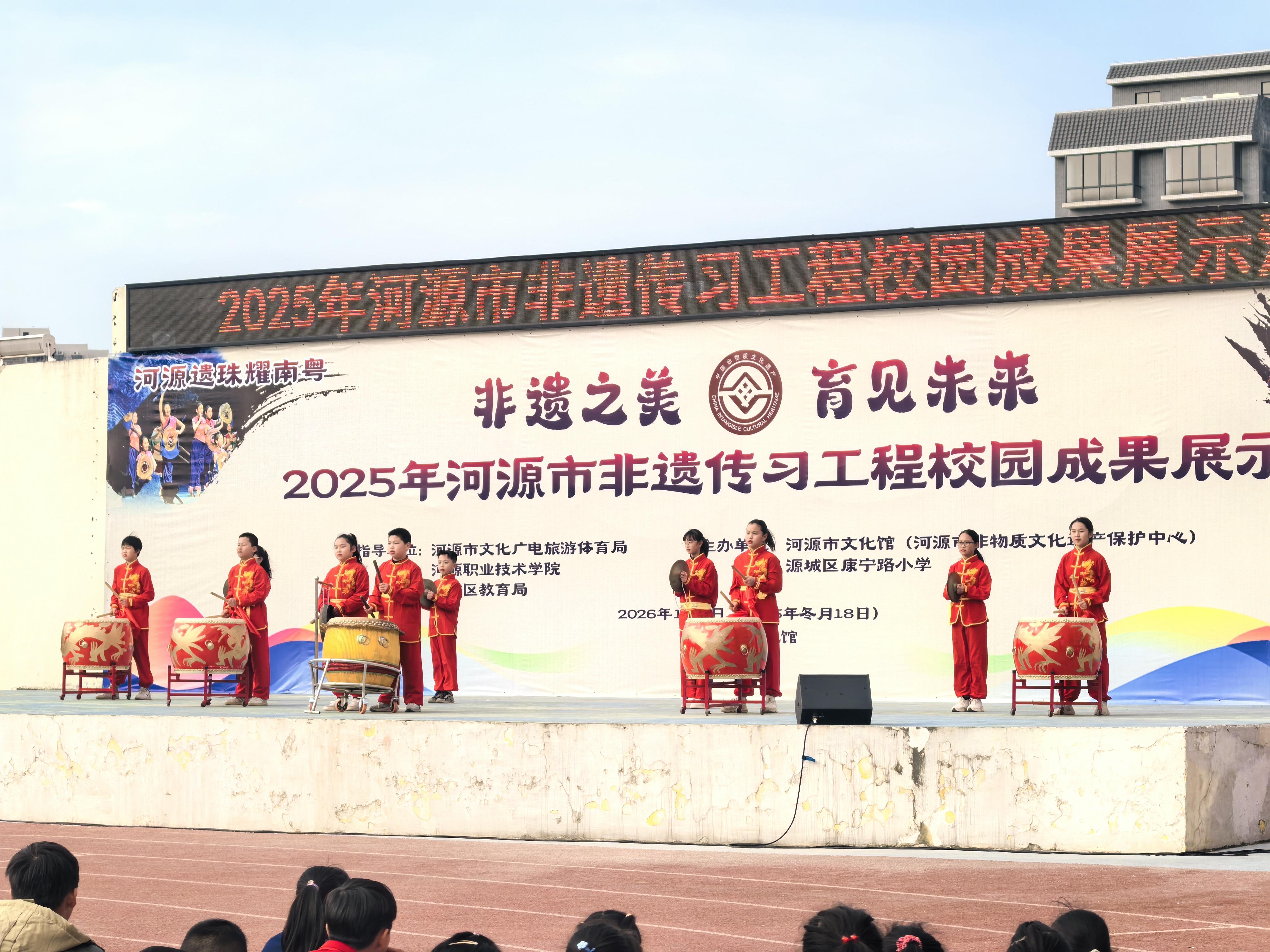 近日,“非遗之美育见未来”——“河源遗珠耀南粤”2025年河源市非遗传习工程校园成果展示活动在源城区康宁路小学举行。
