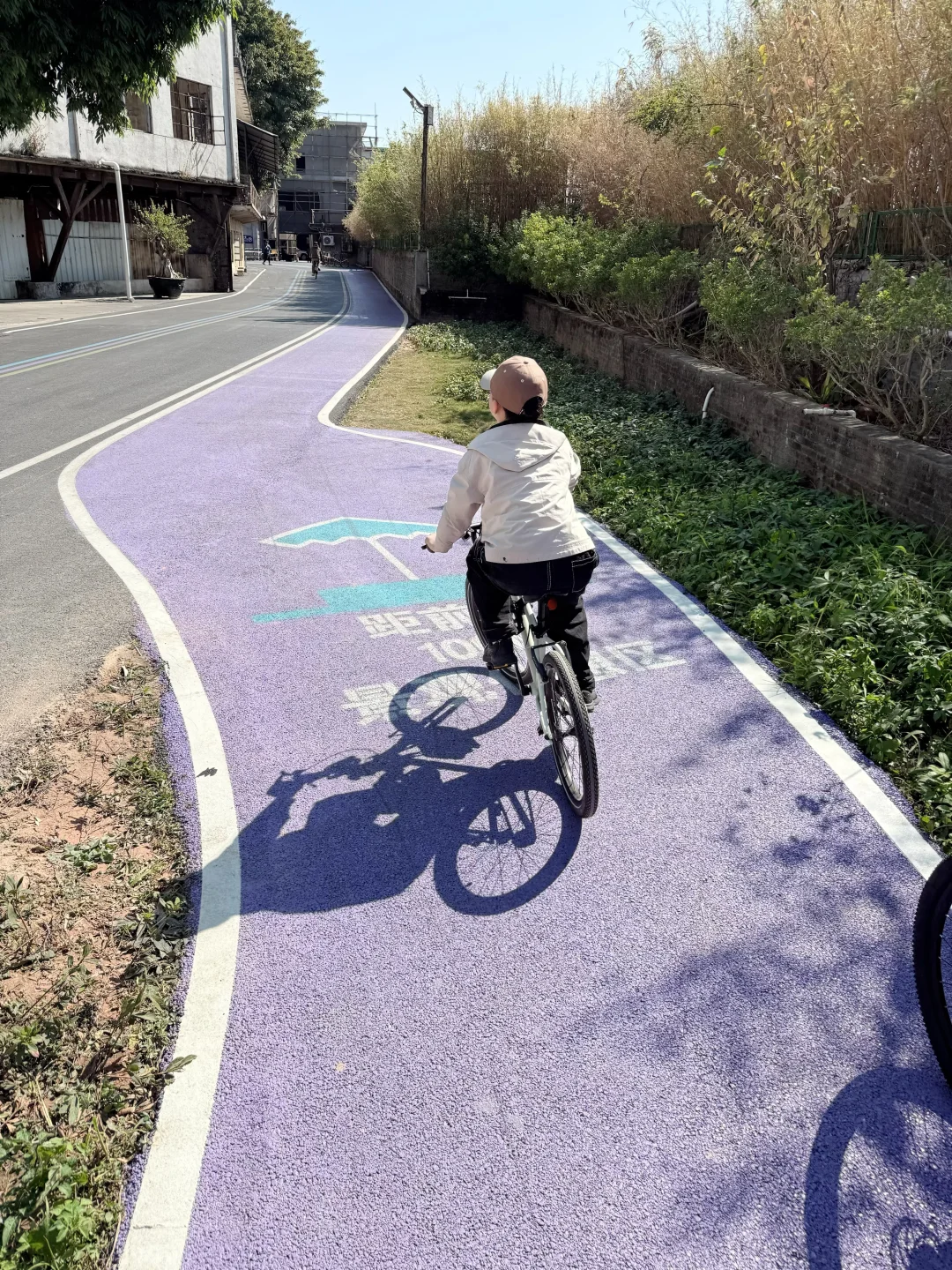 💜11km紫色骑行道 全程梦幻紫色沥青路 基本没坡少红绿灯 对娃太友好了!一路沿江 还能追绝美日落🌇 🎪骑行之外还能这样玩: ▫️小山坡乐园:滑梯、攀爬网、手动海盗船 ▫️华漫英雄馆:漫威迷bi打卡 ▫️旧糖厂遗址:带娃看烟囱涂墙 讲讲制糖历史 📌实用小贴士: ▫️自行车可租 50-80💰/天 (我在一家餐厅吃饭顺便租🚗,最后25/部拿下😎😎) ▫️傍晚骑行最舒服 看日落还不晒 ▫️带汗巾和水 沿途有休息点 🧭导航:紫泥堂创意园/宝墨园 🚲建议:可租车或自带单车