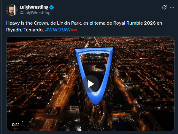虎扑01月13日讯WWE近日宣布林肯公园的《王冠之重》将作为2026皇家大战主题曲。2026年WWE皇家大战将于当地时间1月31日在沙特首都利雅得举行,