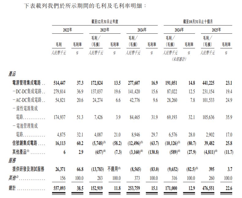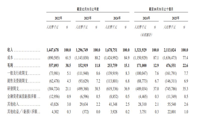 公司于2022年、2023年、2024年、2025年截至10月31日止十个月,毛利率分别为38.5%、11.8%、15.1%、22.6%。