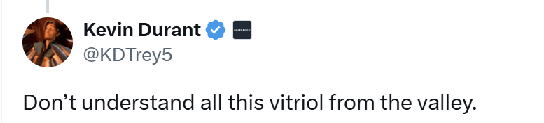 虎扑01月13日讯今日,火箭球员凯文-杜兰特在X上与网友互动。