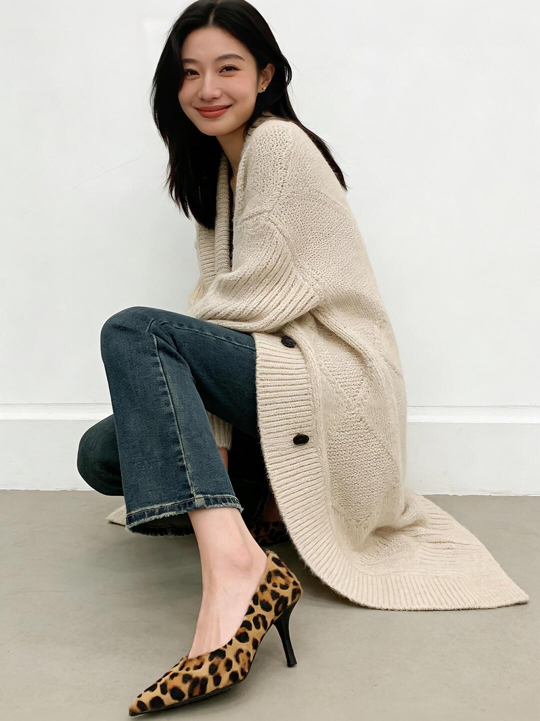 豹纹大衣配厚黑妥妥的没毛病御姐秋冬穿搭