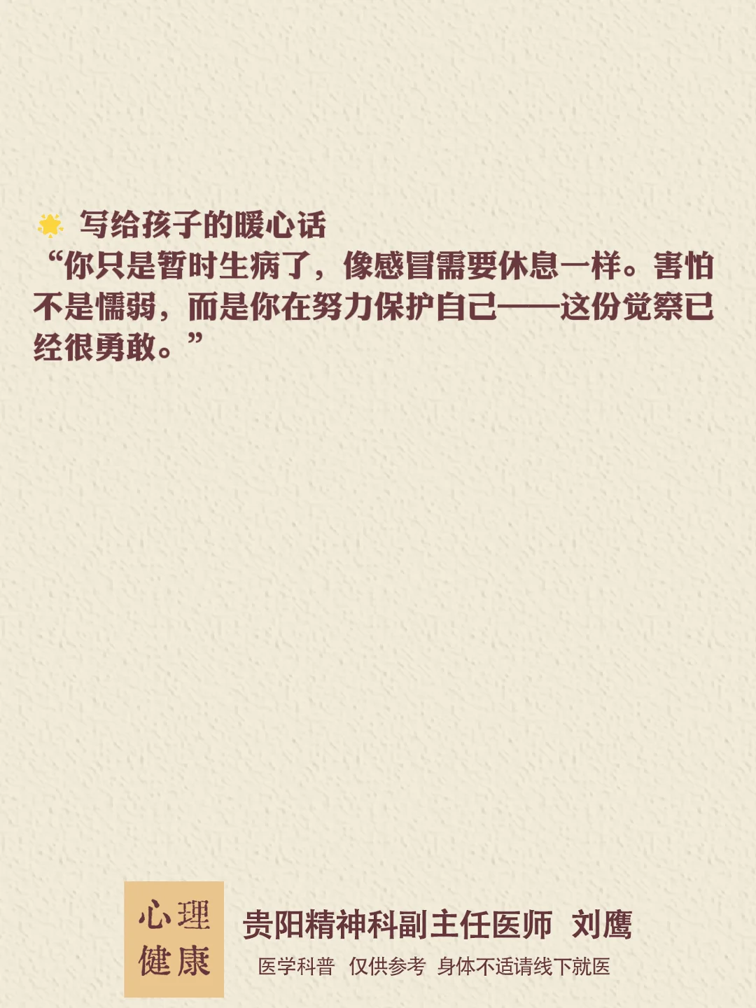 贵州的朋友们,大家好,我是贵阳精神科医生刘鹰。了解更多心理学知识,可移至主页。