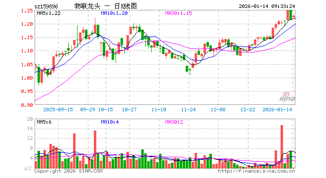 1月14日,物联网ETF南方(159896)开盘涨0.66%,报1.221元。物联网ETF南方(159896)重仓股方面,中际旭创开盘涨1.64%,立讯精密跌0.70%,汇川技术涨0.36%,中兴通讯跌0.12%,兆易创新涨2.47%,豪威集团跌0.14%,科大讯飞涨0.61%,海康威视涨0.49%,美的集团涨0.00%,海尔智家涨0.27%。