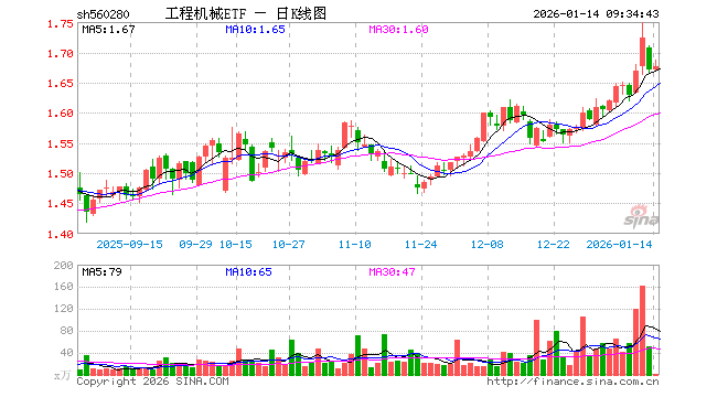 1月14日,工程机械ETF(560280)开盘跌0.06%,报1.670元。工程机械ETF(560280)重仓股方面,三一重工开盘涨0.00%,徐工机械涨0.62%,潍柴动力跌0.21%,恒立液压跌0.44%,中联重科涨0.23%,江淮汽车跌0.29%,柳工跌0.09%,海南华铁涨0.00%,杭叉集团涨0.00%,安徽合力跌0.41%。