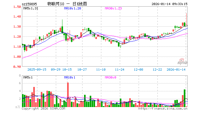 1月14日,物联网ETF易方达(159895)开盘涨1.15%,报1.316元。物联网ETF易方达(159895)重仓股方面,中际旭创开盘涨1.64%,立讯精密跌0.70%,汇川技术涨0.36%,中兴通讯跌0.12%,兆易创新涨2.47%,豪威集团跌0.14%,科大讯飞涨0.61%,海康威视涨0.49%,美的集团涨0.00%,海尔智家涨0.27%。