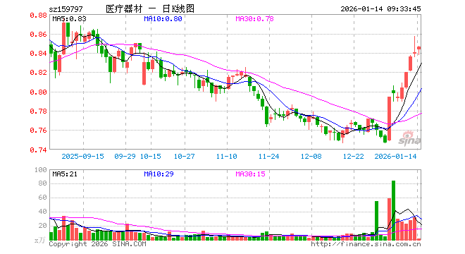 1月14日,医疗器械ETF基金(159797)开盘涨0.36%,报0.843元。医疗器械ETF基金(159797)重仓股方面,迈瑞医疗开盘跌0.11%,联影医疗涨0.02%,惠泰医疗跌0.82%,爱美客跌0.41%,新产业跌0.17%,鱼跃医疗涨0.48%,乐普医疗跌0.15%,福瑞股份涨1.27%,英科医疗跌0.16%,山东药玻涨1.36%。