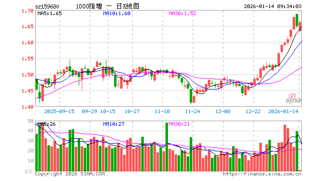 1000ETF增强(159680)业绩比较基准为中证1000指数收益率,管理人为招商基金管理有限公司,基金经理为蔡振、文雨,成立(2022-11-18)以来回报为64.71%,近一个月回报为11.53%。