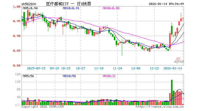 1月14日,医疗器械ETF(562600)开盘涨0.00%,报0.958元。医疗器械ETF(562600)重仓股方面,迈瑞医疗开盘跌0.11%,联影医疗涨0.02%,爱美客跌0.41%,新产业跌0.17%,惠泰医疗跌0.82%,鱼跃医疗涨0.48%,乐普医疗跌0.15%,福瑞股份涨1.27%,英科医疗跌0.16%,山东药玻涨1.36%。