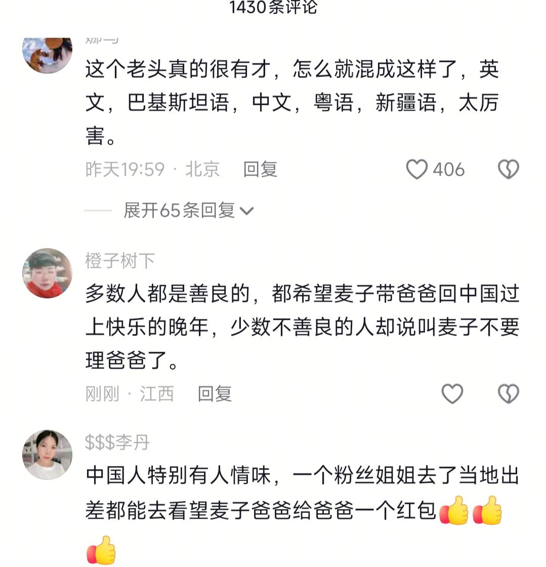 看到欧阳带着广州粉丝来看望小麦爸爸,我忍了 看到一见到麦爸就送礼送红包,我也忍了 可看到麦霸对小麦说,交到真心朋友不容易,要珍惜,我再也忍不了 我晕,你们敢信?有人说亲情在流量面前不值一提,直到看到小麦和麦爸的事儿,我直接破防!小麦回国前,欧阳带着广州粉丝夫妇去看术后的麦爸,又是送礼物又是塞红包,本来以为就是普通的粉丝探望,结果麦爸一句话,直接让在场的人都沉默了。说实话,这种突如其来的走心瞬间,真的比看啥狗血剧都戳人,谁懂啊! 老实讲,麦爸那段话我记老清楚了。他说小麦来巴基斯坦之前,自己每天就是起床吃饭出门回家,流程固定得像个机器人,遇到事儿只能自己扛,往来的人屈指可数,日子过得那叫一个无聊。本来想就这样孤孤单单过下去得了,但后来发现,小麦一来,天翻地覆!家里开始有亲友串门,问候的电话没断过,手术的时候两个堂哥忙前忙后,连喘气的功夫都没有。麦爸还转头叮嘱小麦,交到真心对自己好的人不容易,这个社会上的人想法都不一样,一定要好好珍惜。我当时看到这段,心里咯噔一下,这哪里是emo,这分明是实实在在的感动啊! 然后重点来了!粉丝夫妇听完直接说,这就是血浓于水啊!我本来以为这事儿到这儿就圆满了,没想到小麦紧接着爆料,自己早就给麦爸安排好工作了——巴基斯坦一家中国老板开的二手服装店,管吃管住还能挣钱,简直不要太给力! Perfect!这下小麦回国也能放心了,麦爸的日子也过得巴适得很。 不过网上吵翻了天,有人说麦爸的转变全靠小麦的流量,没有关注度谁会去探望?我真的郁闷,这不是胡扯吗?也有人说,核心还是亲情羁绊,流量只是锦上添花。有朋友跟我说:“这就是因缘际会呗,人和人的羁绊都是自带的,该来的总会来。” 我和小伙伴都惊呆了,这话听着有点那味儿,但确实在理。本来以为就是简单的暖心故事,没想到还能引发这么多讨论,说实话我有点困惑,为啥总有人喜欢把简单的事儿复杂化? 总之,我算是看透了,不管是亲情还是友情,实实在在的行动永远比嘴上的漂亮话管用。你说是吧!麦子爸爸 麦爸爸
