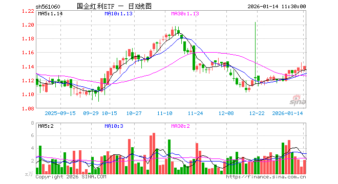 1月14日,截止午间收盘,国企红利ETF(561060)涨0.44%,报1.140元,成交额241.02万元。国企红利ETF(561060)重仓股方面,中远海控截止午盘跌0.07%,冀中能源涨0.00%,潞安环能跌0.08%,山煤国际涨0.19%,山西焦煤涨0.29%,南钢股份涨4.07%,鲁西化工涨0.93%,中粮糖业涨2.18%,恒源煤电涨0.31%,厦门国贸涨0.28%。