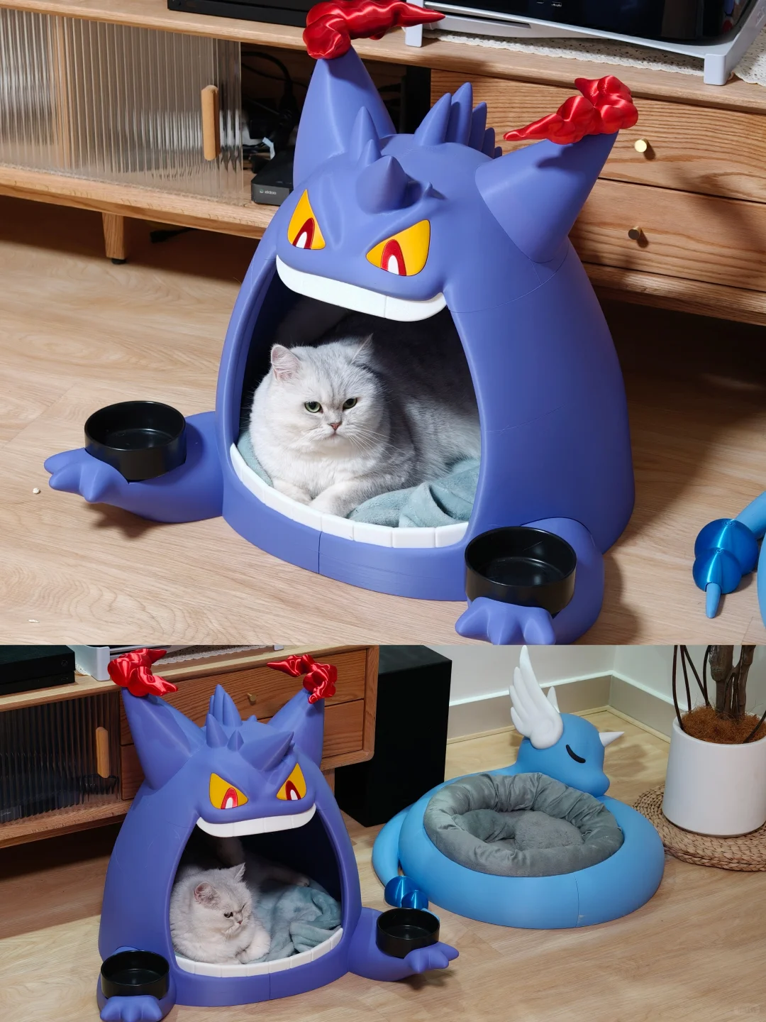 他不仅复刻一些售价昂贵的官方周边,上传到开源社区让大伙能自己打印当“欺骗餐”吃吃,还整出了哈克龙猫窝和椰蛋树猫爬架这种超级大件,叹为观止。