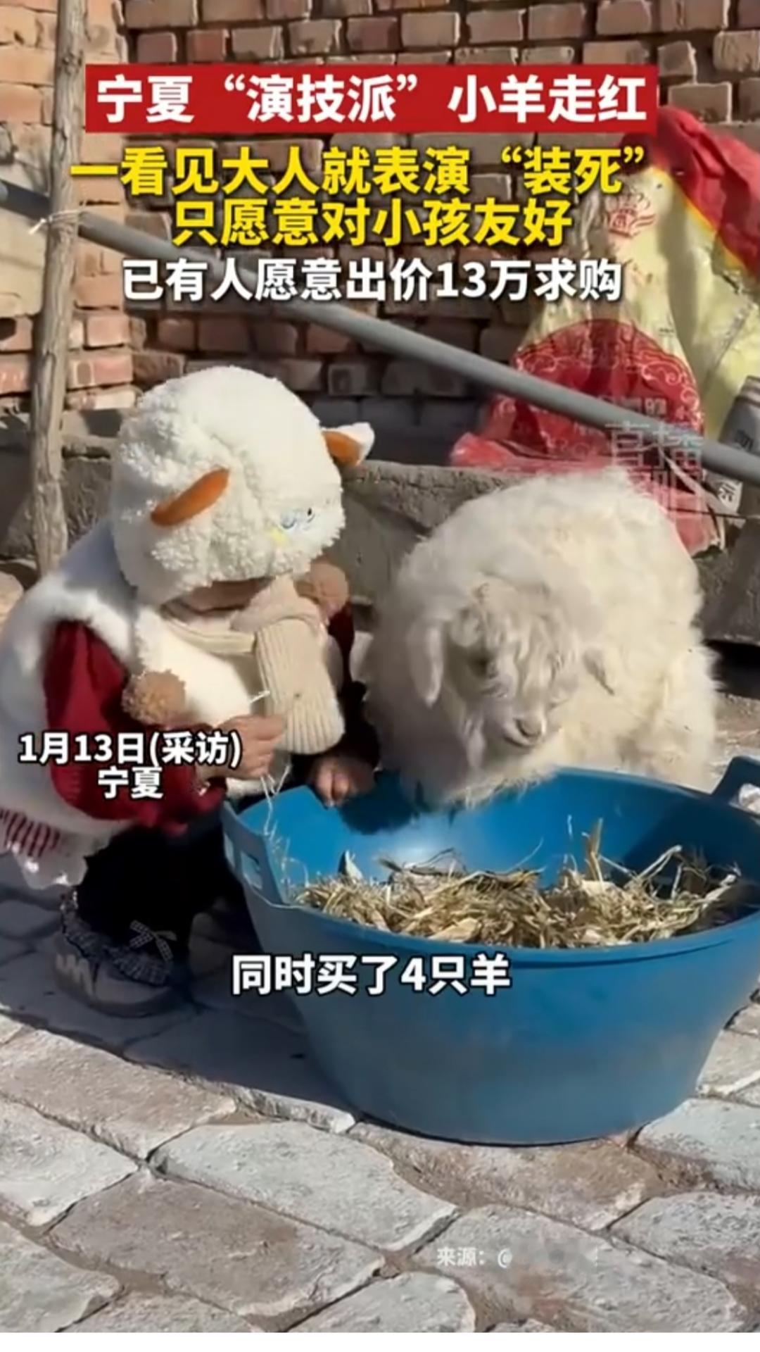 不和大人玩的“死羊羊”值13万 近日,宁夏“演技派”小羊走红,一看见大人就表演“装死”,遇到小孩却很温顺,已有人愿意出价13万求购。 真不知道大人怎么得罪这只小羊了,就是不和大人玩,大人一来就装死,我就是不和你玩。这技能竟然值13万,羊也知道学点技能有用啊[我想静静]。万物有灵性,主人舍不得卖他们家这可爱的小羊。