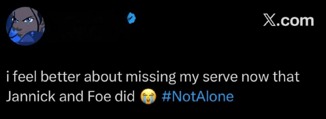 “既然辛纳和蒂亚福都是发球失误出局,那我感觉好多了。”