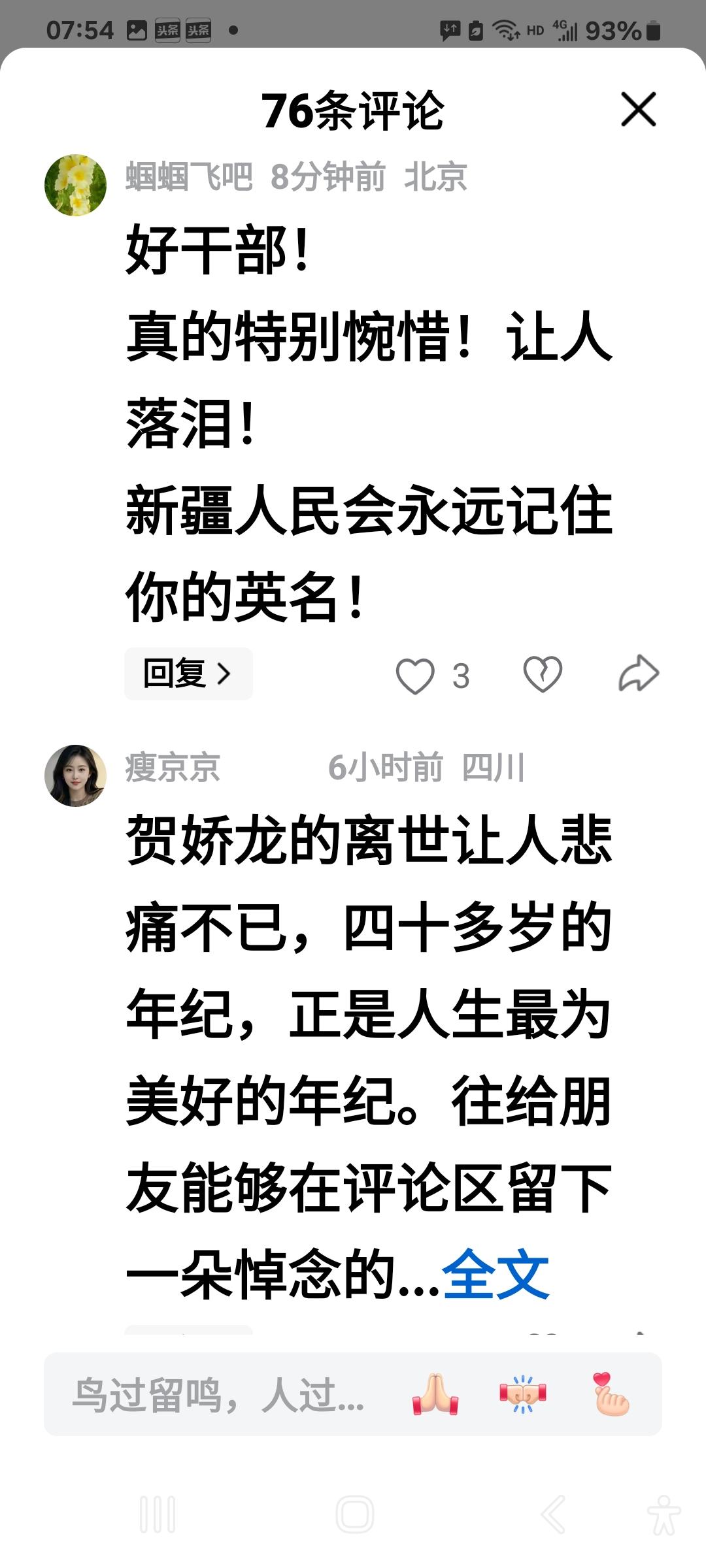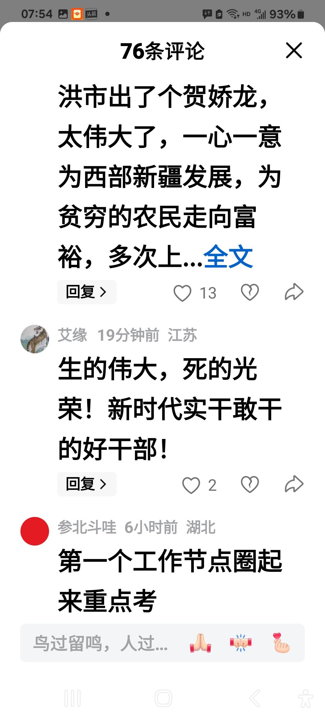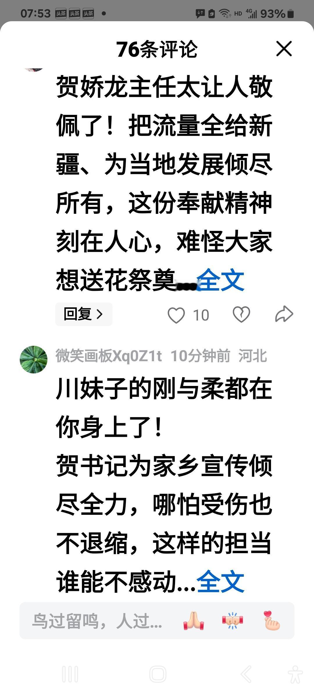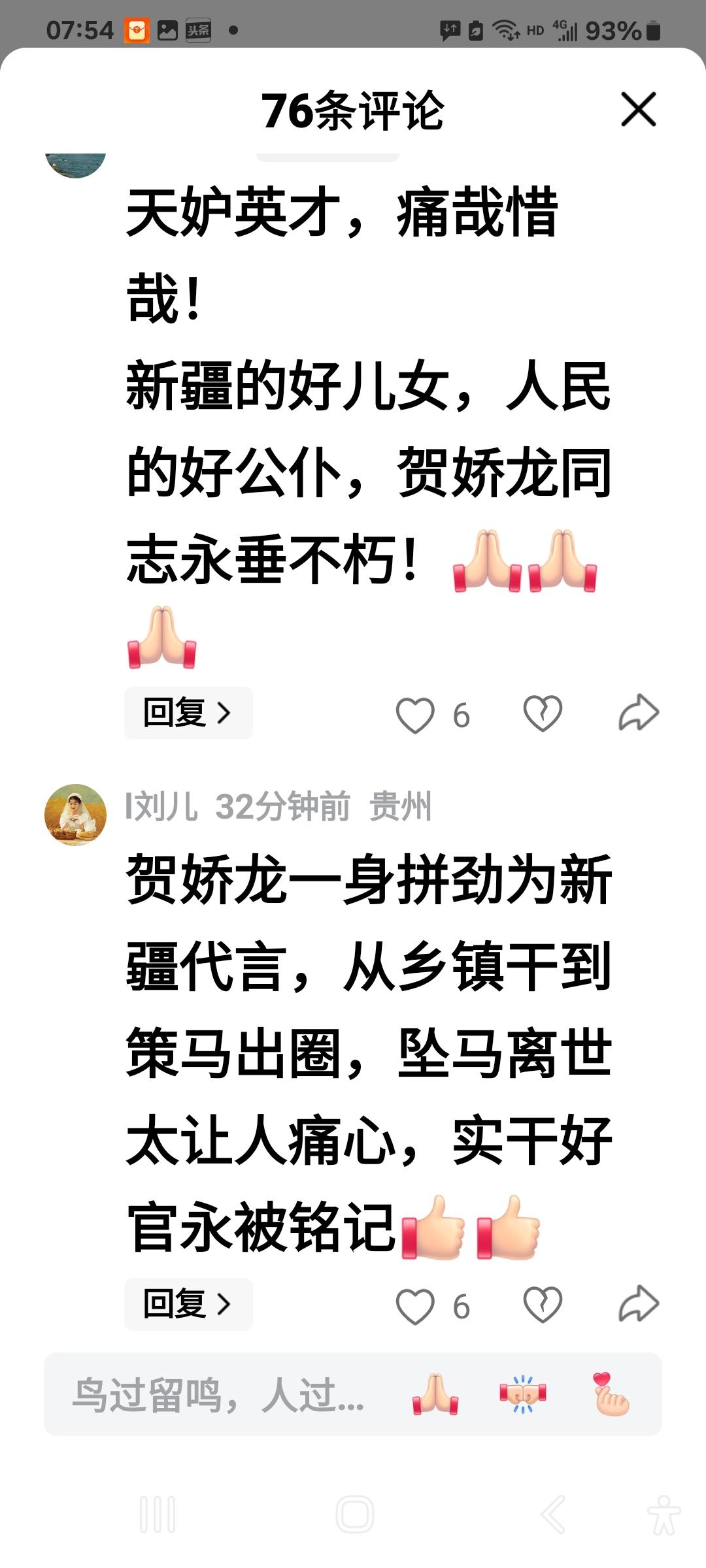 贺娇龙把流量献给了人民, 有的人把流量赚给了后代。 贺娇龙死了, 她却活着。 有的人活着, 他(她)已经死了。 贺娇龙生的伟大, 死的光荣。 我们记住的不止是她马背上的一抹红, 更是她用生命诠释的中国红!