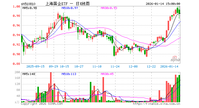1月14日,上海国企ETF(510810)跌0.10%,成交额1.80亿元。当日份额减少1.30亿份,最新份额为63.14亿份,近20个交易日份额减少10.34亿份。最新资产净值计算值为62.12亿元。