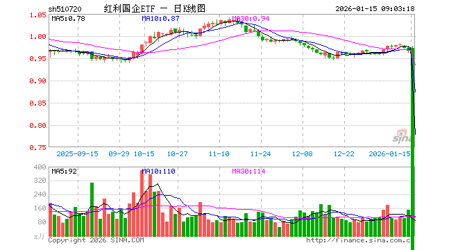 红利国企ETF(510720)业绩比较基准为上证国有企业红利指数收益率,管理人为国泰基金管理有限公司,基金经理为麻绎文,成立(2024-04-30)以来回报为3.97%,近一个月回报为1.52%。