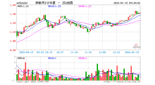 1月15日,物联网ETF华夏(516260)开盘涨0.08%,报1.306元。物联网ETF华夏(516260)重仓股方面,中际旭创开盘跌1.65%,立讯精密跌0.45%,汇川技术跌0.08%,中兴通讯跌1.09%,兆易创新跌1.34%,豪威集团跌0.07%,科大讯飞跌1.56%,海康威视跌0.57%,美的集团涨0.40%,海尔智家跌0.42%。