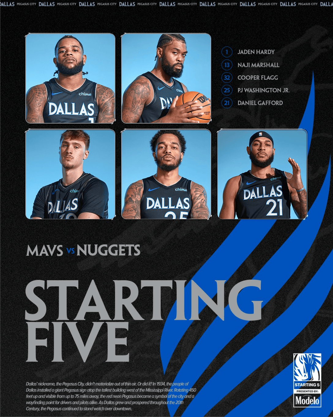 独行侠首发:哈迪、马绍尔、弗拉格、华盛顿、加福德