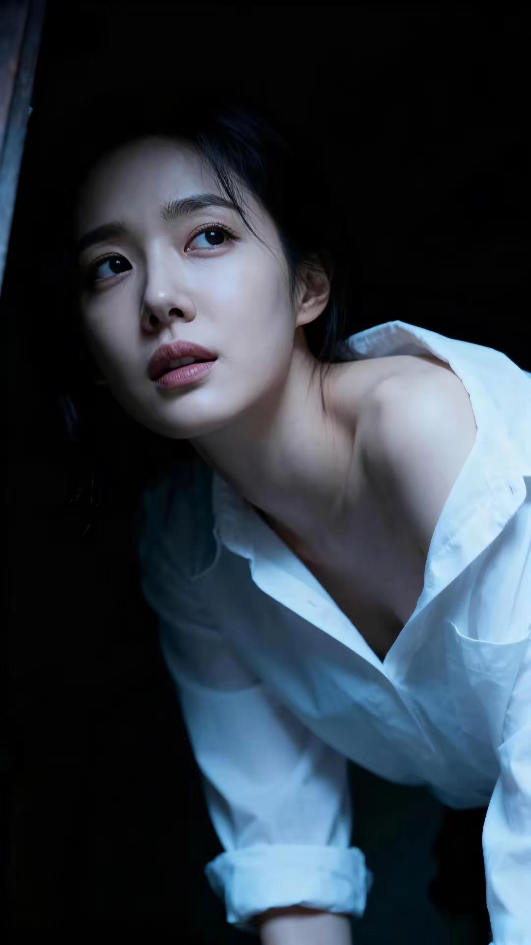 夜晚的神秘氛围,白衬衫的少女,静谧而美丽。