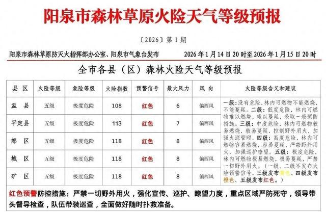 阳泉市森林草原火险天气等级预报