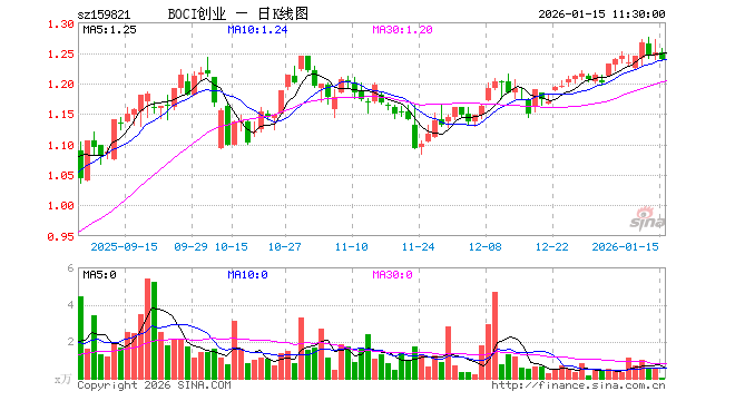 1月15日,截止午间收盘,创业板ETF中银证券(159821)跌0.88%,报1.239元,成交额6.96万元。创业板ETF中银证券(159821)重仓股方面,宁德时代截止午盘涨0.01%,中际旭创跌1.07%,东方财富跌2.87%,新易盛跌1.51%,阳光电源跌1.59%,胜宏科技跌2.74%,汇川技术涨2.53%,迈瑞医疗跌1.89%,亿纬锂能涨0.91%,温氏股份跌0.12%。