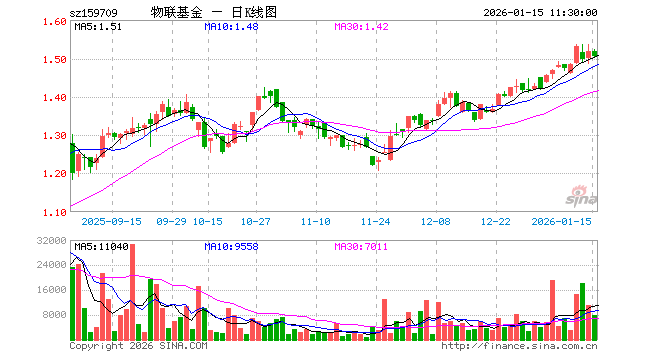 1月15日,截止午间收盘,物联网ETF工银(159709)跌0.79%,报1.506元,成交额121.30万元。物联网ETF工银(159709)重仓股方面,中际旭创截止午盘跌1.07%,新易盛跌1.51%,美的集团涨0.71%,北方华创跌1.82%,汇川技术涨2.53%,中兴通讯跌2.38%,海康威视跌0.76%,科大讯飞涨1.52%,歌尔股份涨3.32%,华工科技跌2.10%。