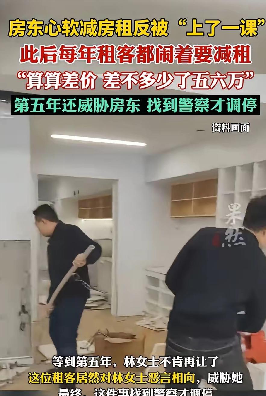 [中国赞]1月13日,浙江杭州,女房东看到租客生意不好,家里还有人生病,于是心一软,当年给租客减免了15000元房租。没想到,租客不仅不知道感恩,反而每年都闹着要减房租,四年下来,女房东给减免了五六万。第五年,女房东不肯再减免房租,可谁知租客竟直接对她恶语相向,甚至还威胁她。女房东实在没办法,这才选择了报警。 (信源:焦作广播电视台——房东心软减租15000元,反被狠狠上了一课!“四年累计减租50000多”。) “早知道是这样的结果,当初我绝不会心软。”浙江杭州一位女房东的感慨,戳中了无数网友的痛点。谁能想到,一场始于怜悯的善意之举,最终会演变成纠缠不休的噩梦。 她因租客困境主动减免1.5万房租,四年累计让利五六万元,可当自己力不从心拒绝继续减租时,曾经低声下气的租客瞬间变脸,恶语相向、威胁纠缠样样来。 这场发生在杭州的租赁纠纷,不仅撕碎了人与人之间的信任,更给所有心怀善意的人敲响了警钟:善良要有底线,心软要有尺度,否则你的善意,只会成为别人得寸进尺的筹码。 故事的开端,满是人间温情。几年前,杭州女房东偶然得知,自己的租客正遭遇人生低谷:生意遭遇瓶颈,资金链断裂,家中还有重病的家人需要照料,多重压力之下,租客的生活陷入前所未有的拮据。 同为普通人,女房东深知困境中的艰难,看着租客憔悴的模样,她没有丝毫犹豫,主动提出减免当年15000元的房租。这笔钱对女房东来说并非小数目,却是她能给出的最大善意,只希望能帮租客渡过难关。 这份突如其来的温暖,让租客感激涕零,连连承诺日后好转定会报答。可女房东从未想过要什么回报,她只是单纯地觉得,能帮一把就帮一把。可她没料到,自己的心软,竟成了租客得寸进尺的开端。 从第二年开始,租客便以“生活仍困难”为由,再次向女房东提出减租请求。想起租客此前的窘迫,女房东又一次心软了,哪怕自己的生活也并不富裕,还是咬牙答应了对方的要求。 这一妥协,就是四年。四年里,租客每年都会找各种理由要求减租,而女房东的善意,也在一次次的心软中不断被消耗。 她以为,自己的持续付出能换来租客的感恩,能帮对方真正走出困境,却忽略了人性深处的贪婪,早已在一次次的“不劳而获”中悄然滋生。 转折发生在第五年。此时租客生意重回正轨,家人病情得到控制,生活好转,但仍像往常一样向女房东提出减租要求。 而这次女房东无法答应,那段时间她自身生活压力陡增,手头拮据,收入受影响,开支未减。面对租客无理要求,她鼓起勇气明确拒绝继续减免房租,只要求对方按租赁合同按时足额缴纳房租。 谁也没想到,这次拒绝成了租客变脸的导火索。原本对女房东感激、说话低声下气的租客,瞬间撕下伪装,态度反转。 他毫无体谅,对女房东恶语相向,倾泻不满。他称女房东“不近人情”,说拒绝减租是“故意为难”他,还直白威胁“你不让我好过,你也别想安宁”。 言语攻击还不够,租客更是将矛盾升级到了现实中。他频频跑到女房东的家门口纠缠,不分昼夜地敲门、喊话,严重扰乱了女房东和家人的正常生活。女房东尝试过和租客沟通,希望对方能念及过往的情分,理性解决问题,可每次沟通都以租客的谩骂和威胁告终。 走投无路时,为保护自己和家人安全、维护合法权益,女房东放下情面报警。民警赶到时,租客仍在门口叫嚣,未意识到行为涉嫌违法。这一幕让女房东心中温情消散,只剩唏嘘。她想不通自己的帮助换来的不是感恩,而是难堪闹剧。 杭州女房东的经历,给所有心怀善意的人上了生动的一课:善良很贵,请别随意浪费;心软要有度,请别纵容贪婪。在这个复杂的世界里,我们可以选择善良,但一定要看清对象;我们可以选择心软,但一定要守住底线。 你的善良,应该留给懂得感恩的人;你的心软,不应该成为别人伤害你的武器。唯有如此,我们的善意才能被珍惜,我们的付出才能有意义,人与人之间的信任,才能真正长久。