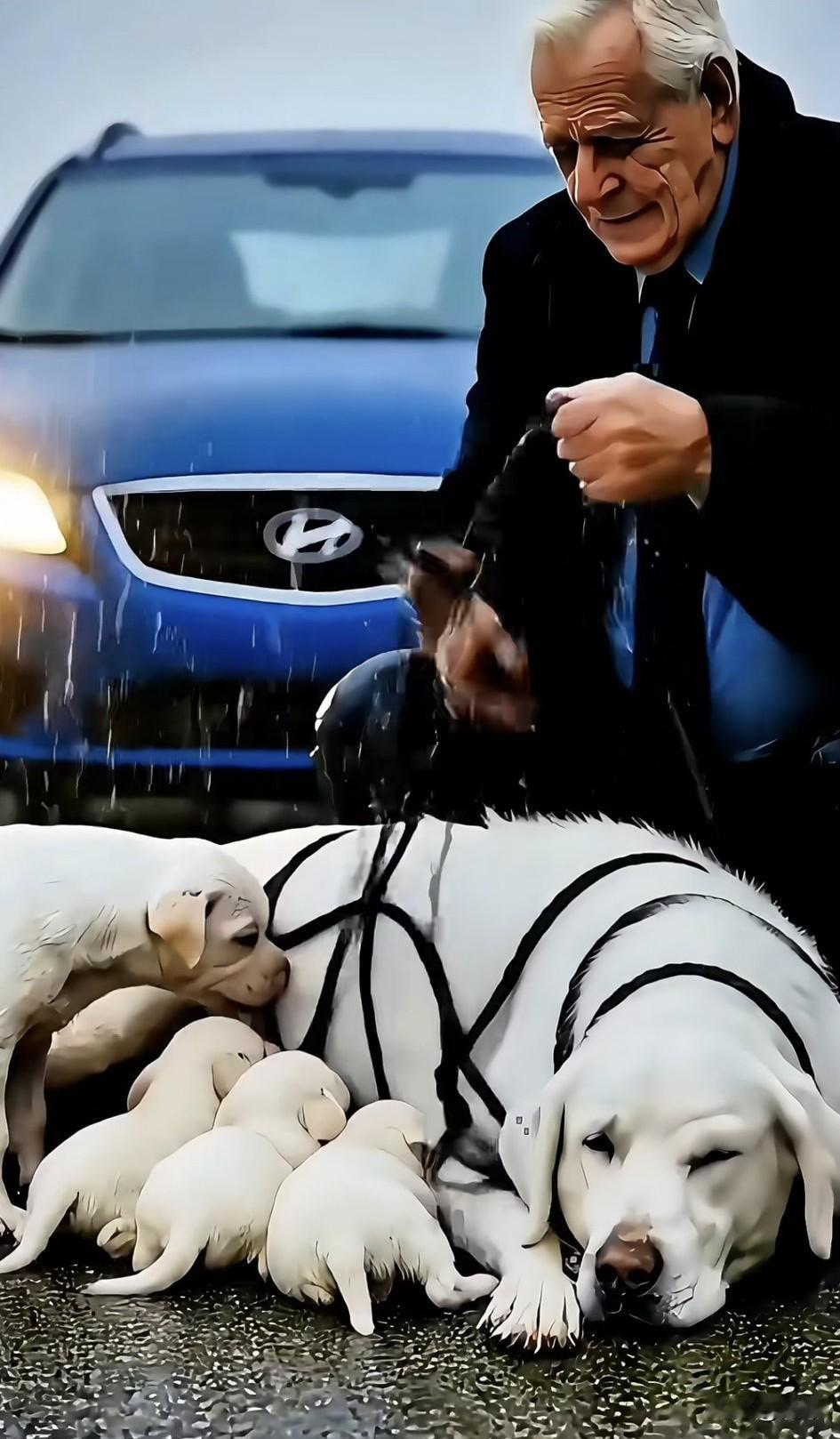 泪目了!一只可怜的狗妈妈被主人连同小狗一起遗弃在了一条马路上,这天还下起了大雨,很快狗妈妈就昏迷了过去,它的孩子们却饿的哇哇大叫,非常可怜。 而路过的车辆压根没有停下来的意思,还有的车辆甚至溅起了许多脏水,浇在了狗妈妈的身上,又冷又饿令它们非常绝望,就在狗妈妈又被冷水浇醒的时候,一辆蓝色的轿车停在了它们的面前,一位老人走了下来,然后帮它剪开了绳子,之后就把它们抱上了车,然后送去了宠物医院治疗。在它们出院之后,他就收养了它们,在他的照顾下,狗妈妈也是慢慢的恢复了。相信在老人家里,它们一家会过得非常幸福的。