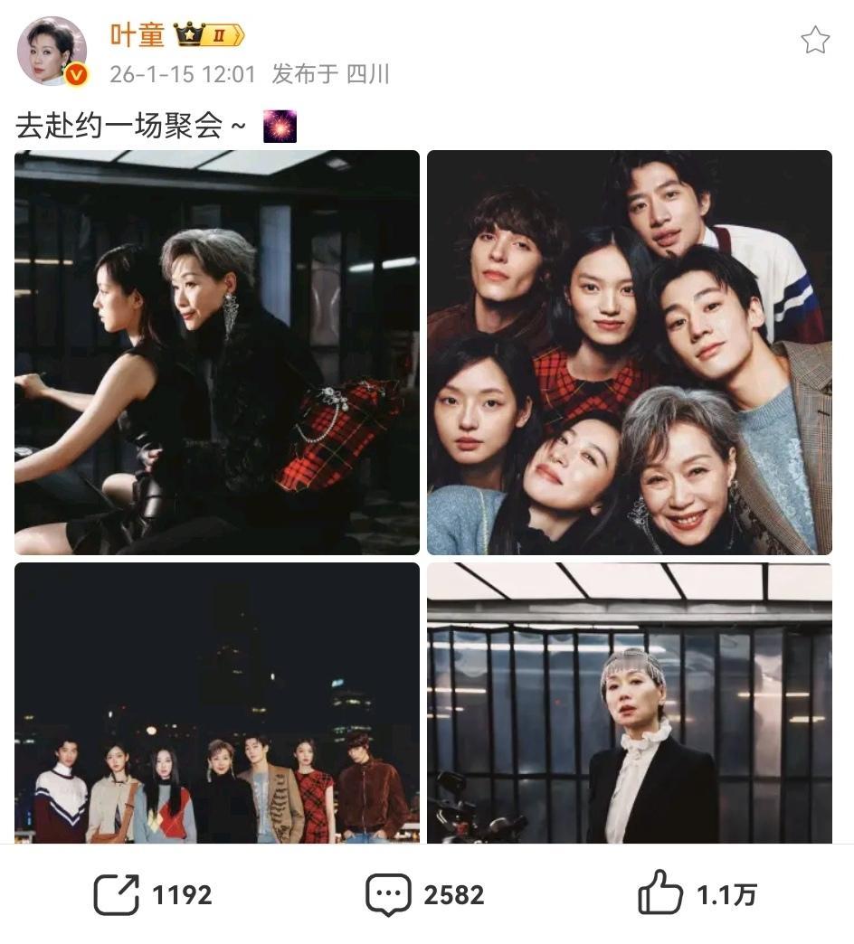 叶童说要去赴一场聚会…… 发现没?63岁的叶童,穿着好酷呀, 一群俊男美女中数她