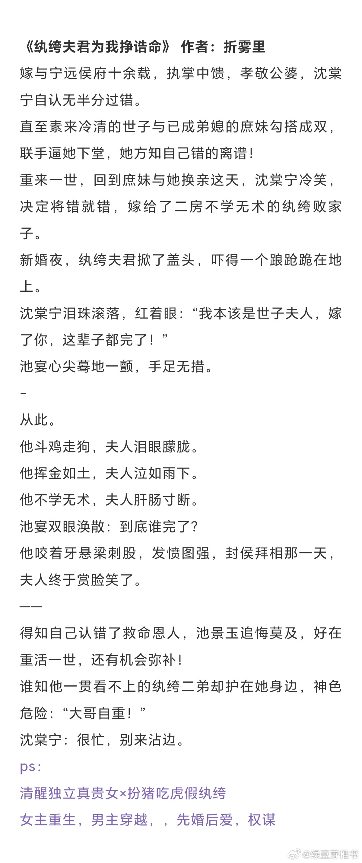 十本重生古言好文:上辈子恨海情天,这一世追妻火葬场。《纨绔夫君为我挣诰命》 作者