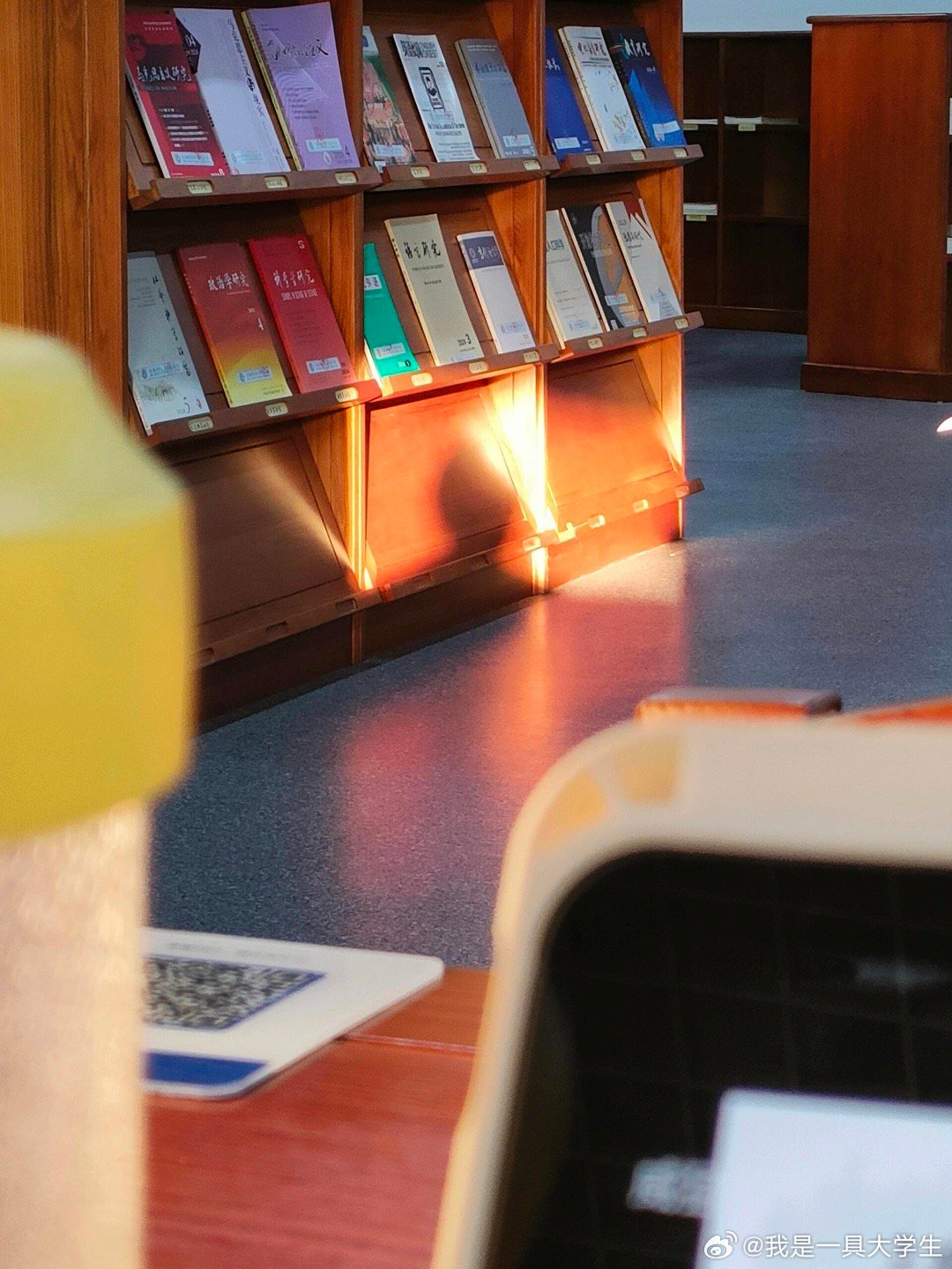 在图书馆抬头,看见阳光每天这个时候太阳正好快要落山,会有束束暖阳照向图书馆内,为埋头学习的我们镀上金光。很享受太阳照进来的这几分钟,好似被太阳偏爱,伸手就能触到光明🌅因为学习的时候,本人超级阴暗哈(bushi[满月R]emmm那就借阳光之意,祝我们的前途光芒万丈吧!