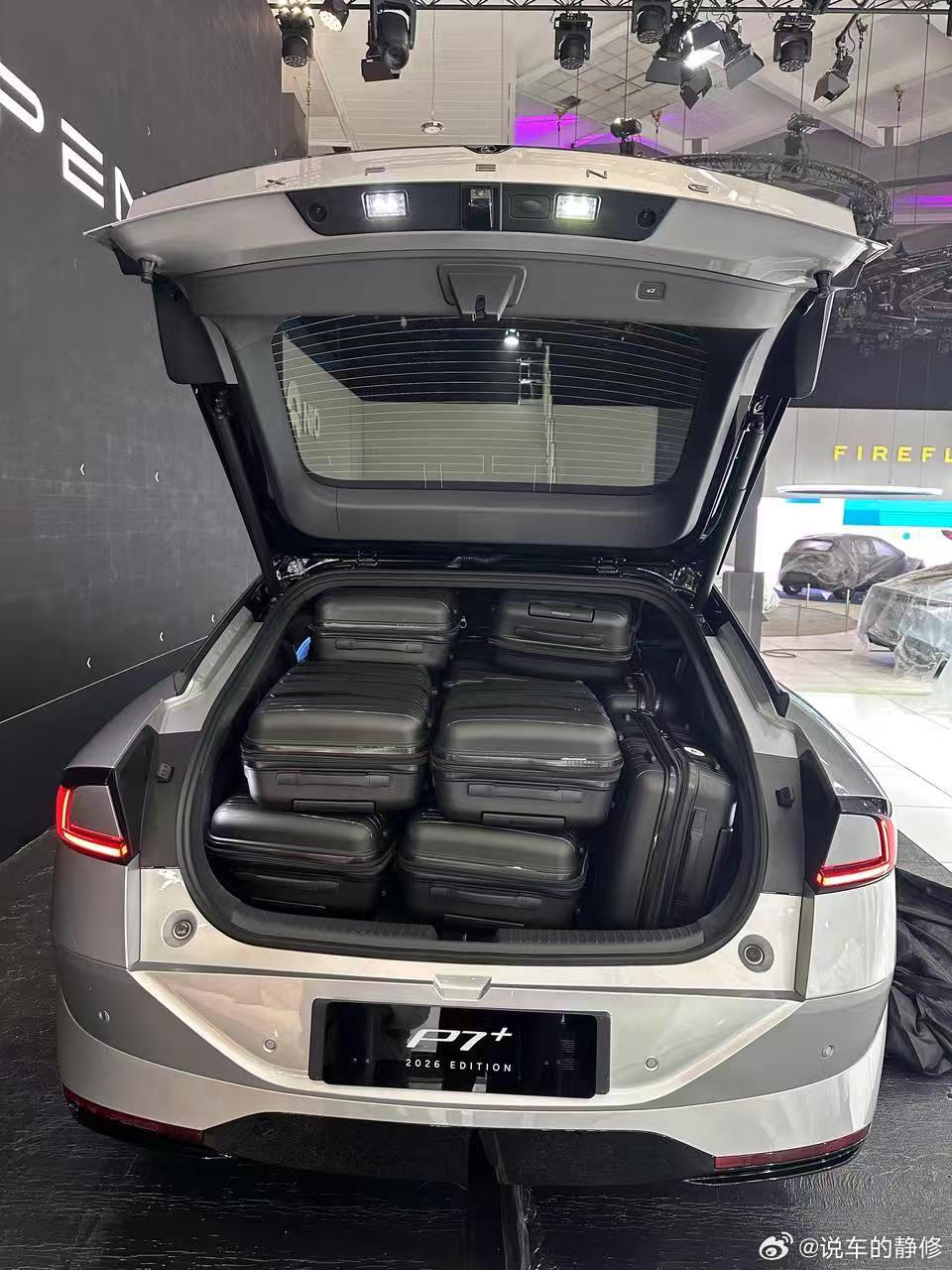 在欧洲比利时布鲁塞尔车展上市发布会现场,新款小鹏P7+轻松装下了33个20寸行李箱,以超大空间震惊欧洲媒体。新款小鹏P7+以“全球车”的标准及品质打造成“舒适空间怪物”,实现同级领先的88%得房率,重新定义轿车空间。前后排均实现“双1米”驾乘空间,轻松达成二郎腿自由;后备厢基础容积达同级超大的725L,放倒后排可扩展至2221L,宽敞度堪比SUV。