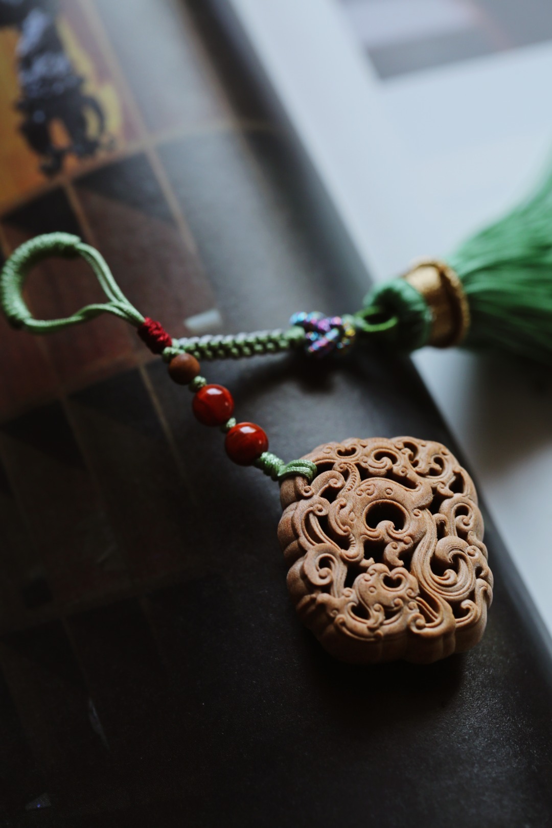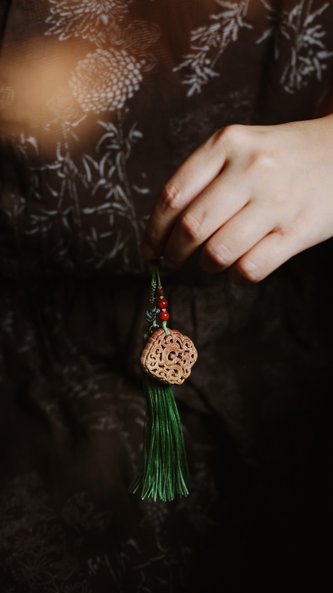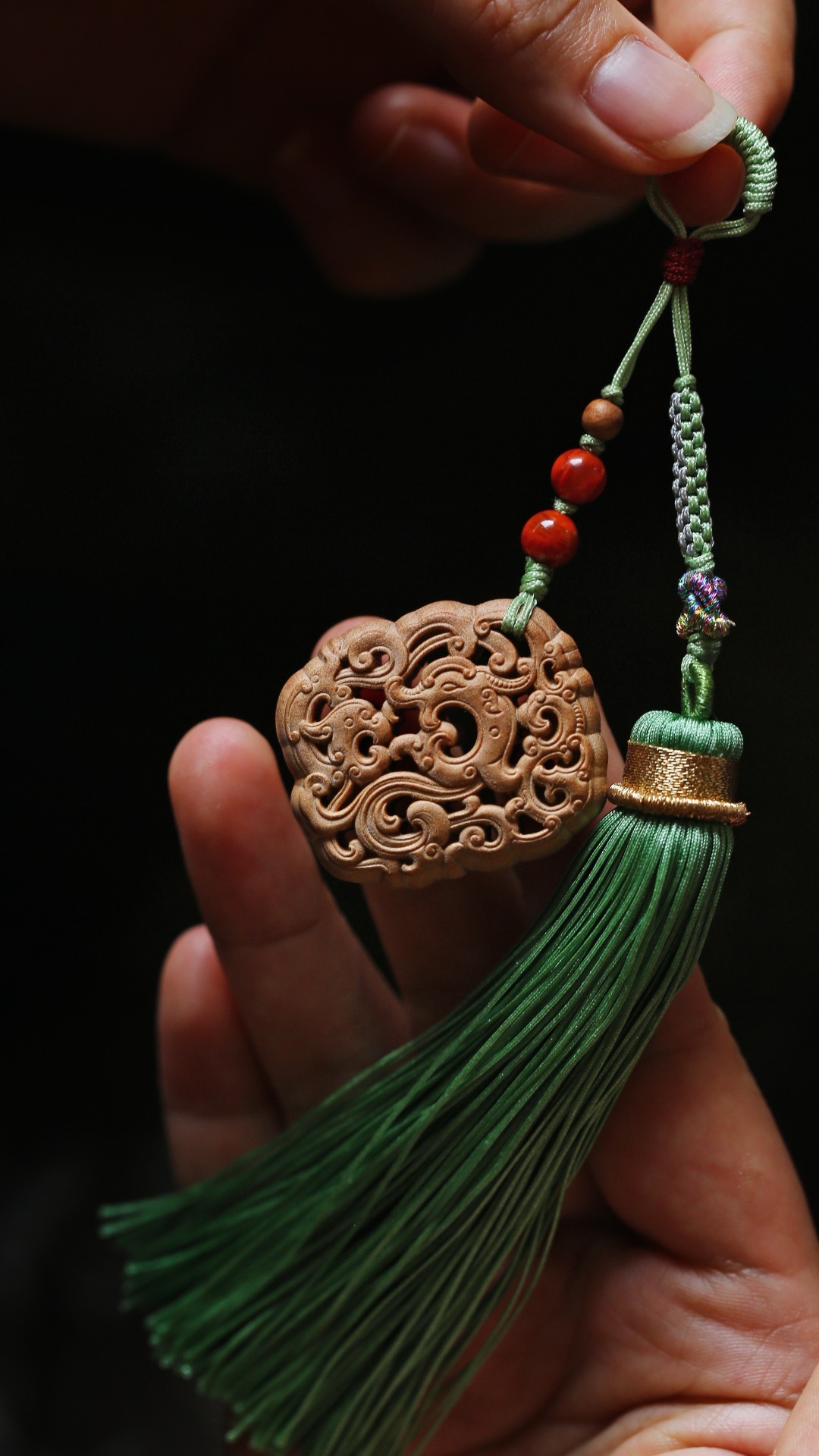 老山檀香【有凤来仪】挂件双面镂雕凤纹,纹姿奇趣生动,巧妙设计搭配,端庄显福气。可包挂,压襟,日常清雅美物。34*30*12mm 长16cm 老山檀香【有凤来仪】挂件