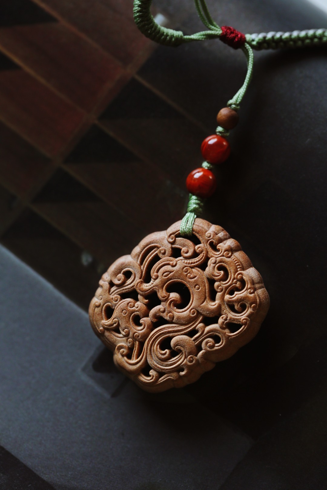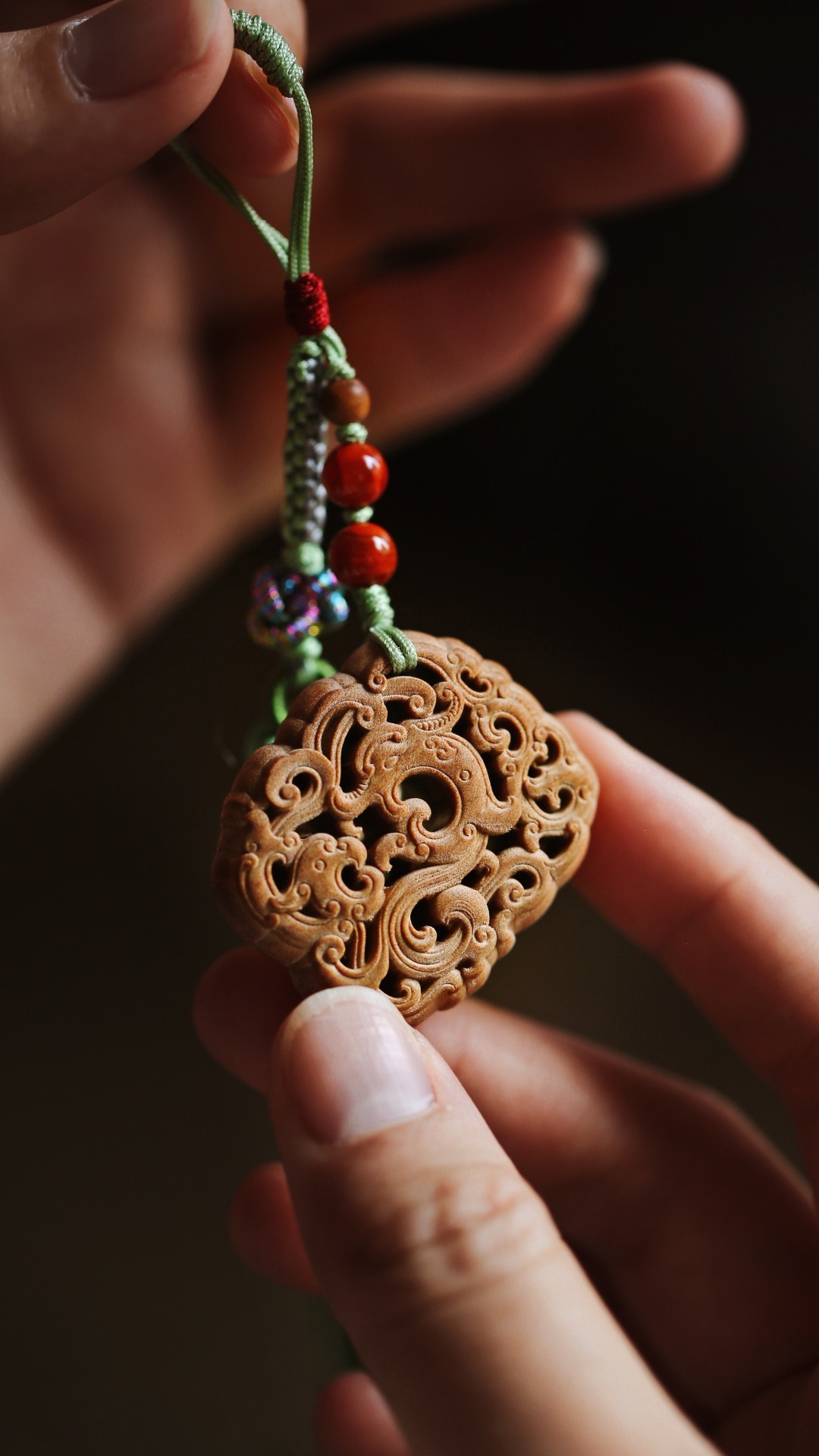 老山檀香【有凤来仪】挂件双面镂雕凤纹,纹姿奇趣生动,巧妙设计搭配,端庄显福气。可