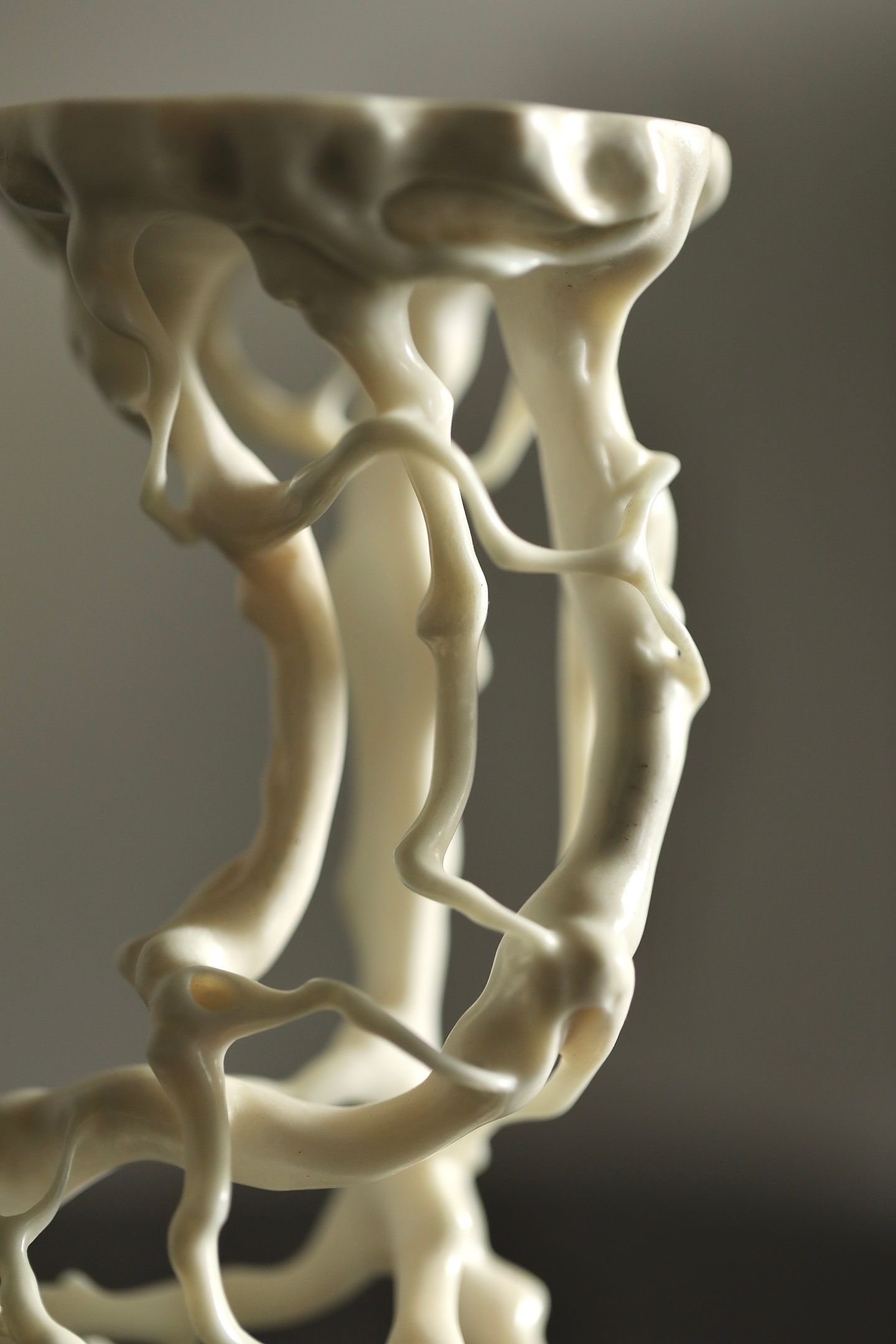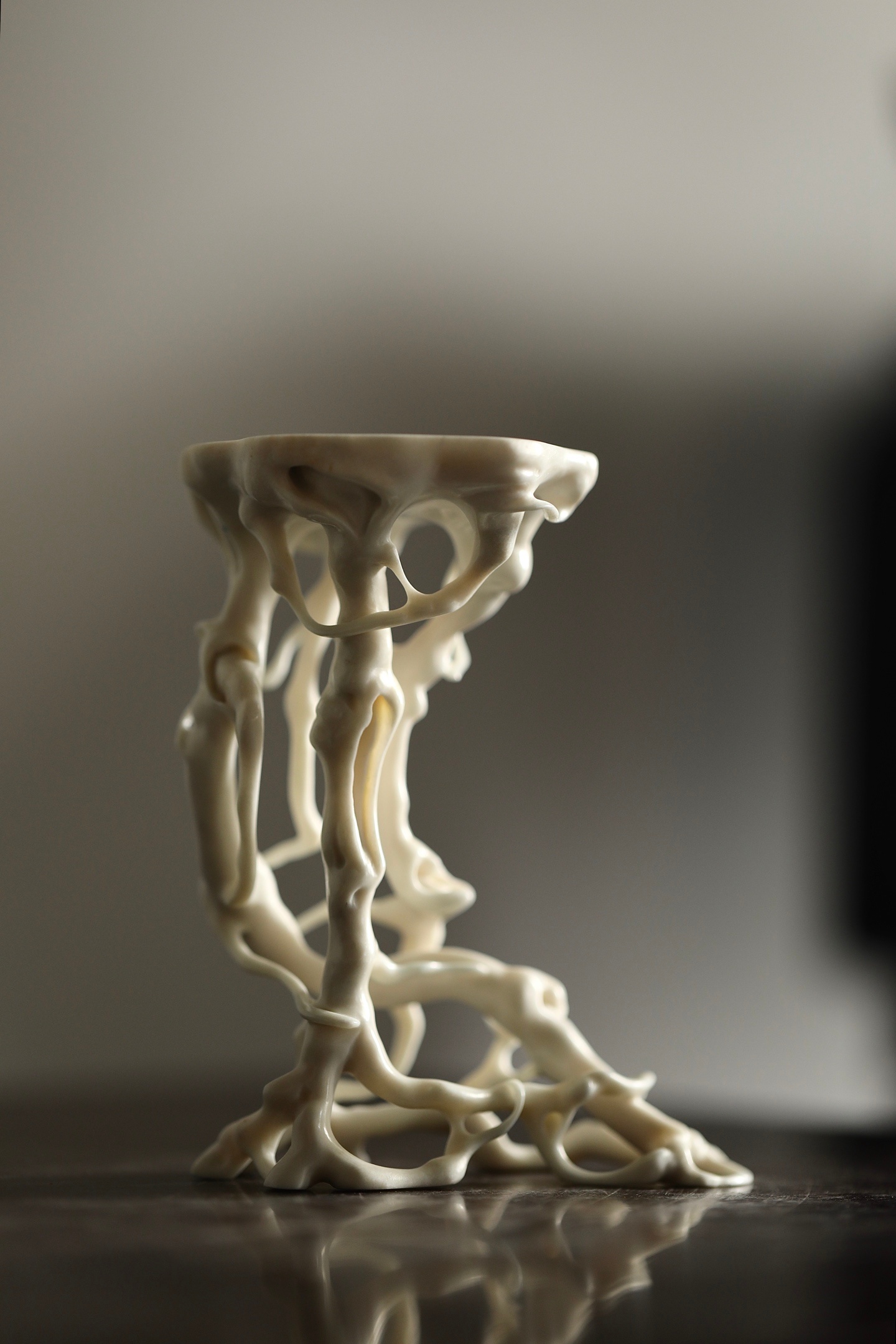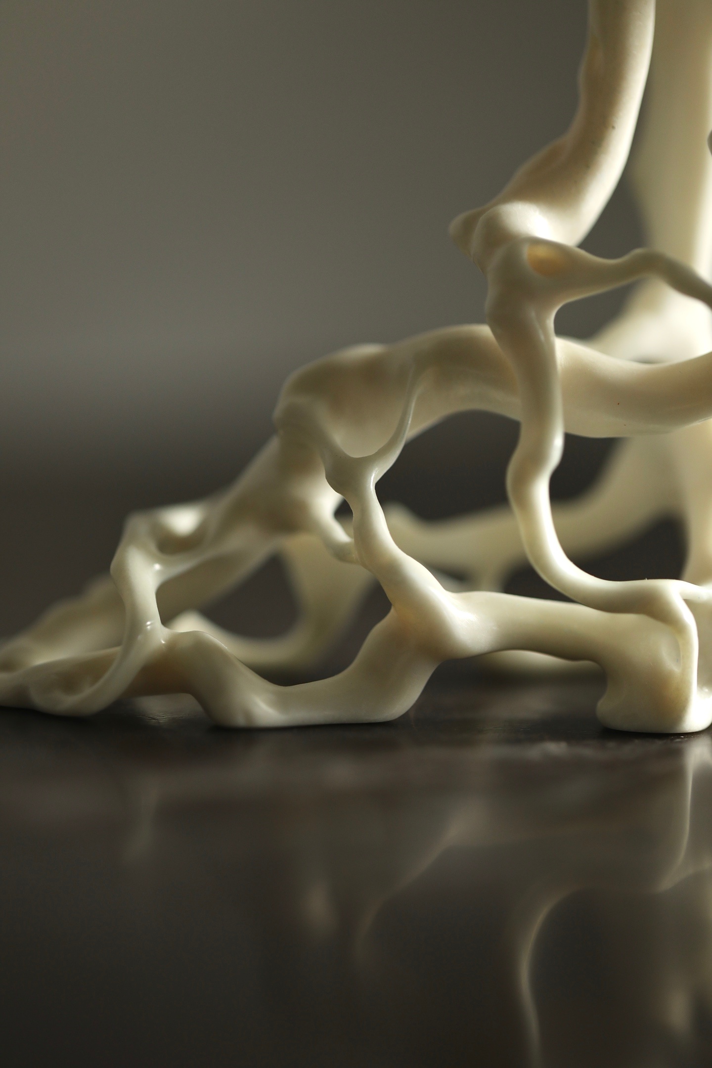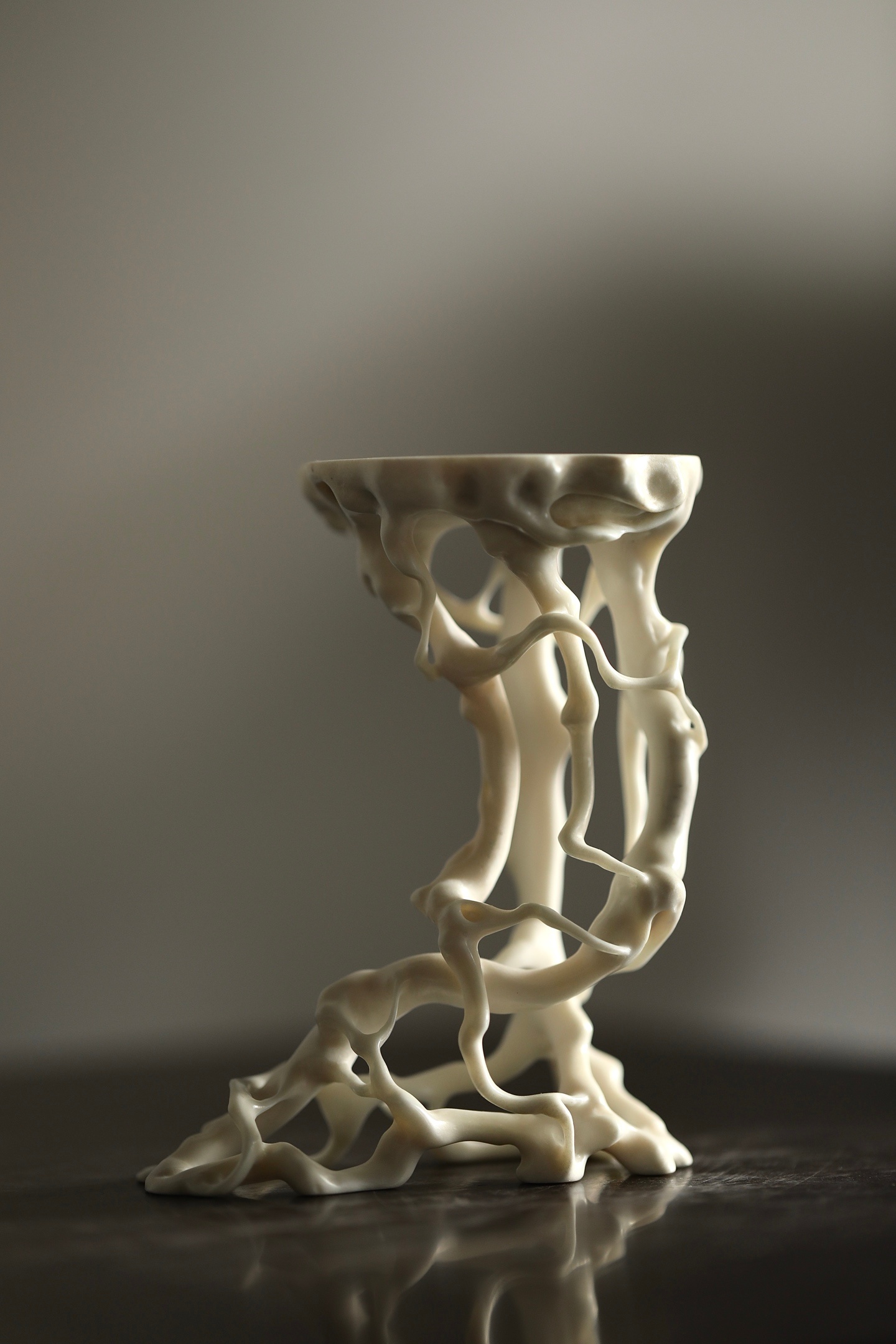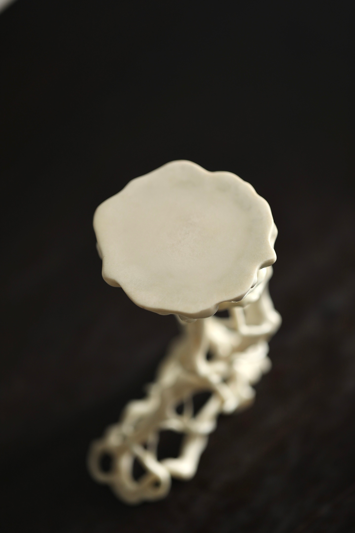 鹿角 | 根几它以天然鹿角为材,随形就势,将盘根错节的形态化为了一座通透空灵的几架。其线条曲折却流畅,孔洞交错而通透,宛如将山林野趣搬进了书斋。无论是承托一方奇石,还是安放一尊古佛,都能瞬间提升空间的格调,尽显文人的清雅品味。8.5×6×11.2cm
